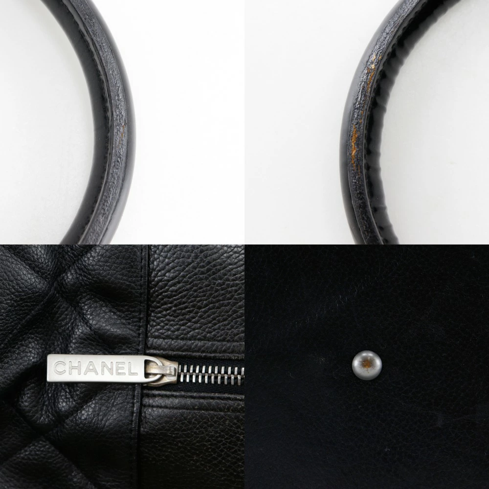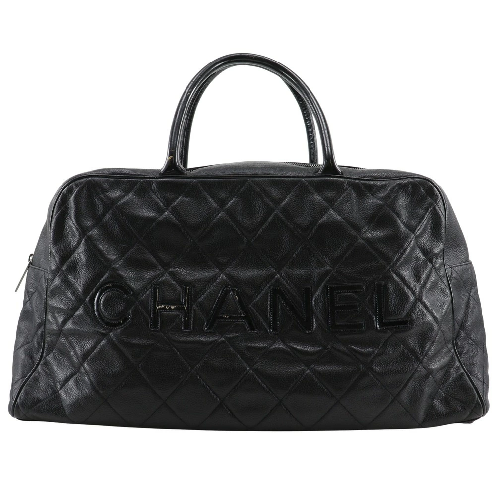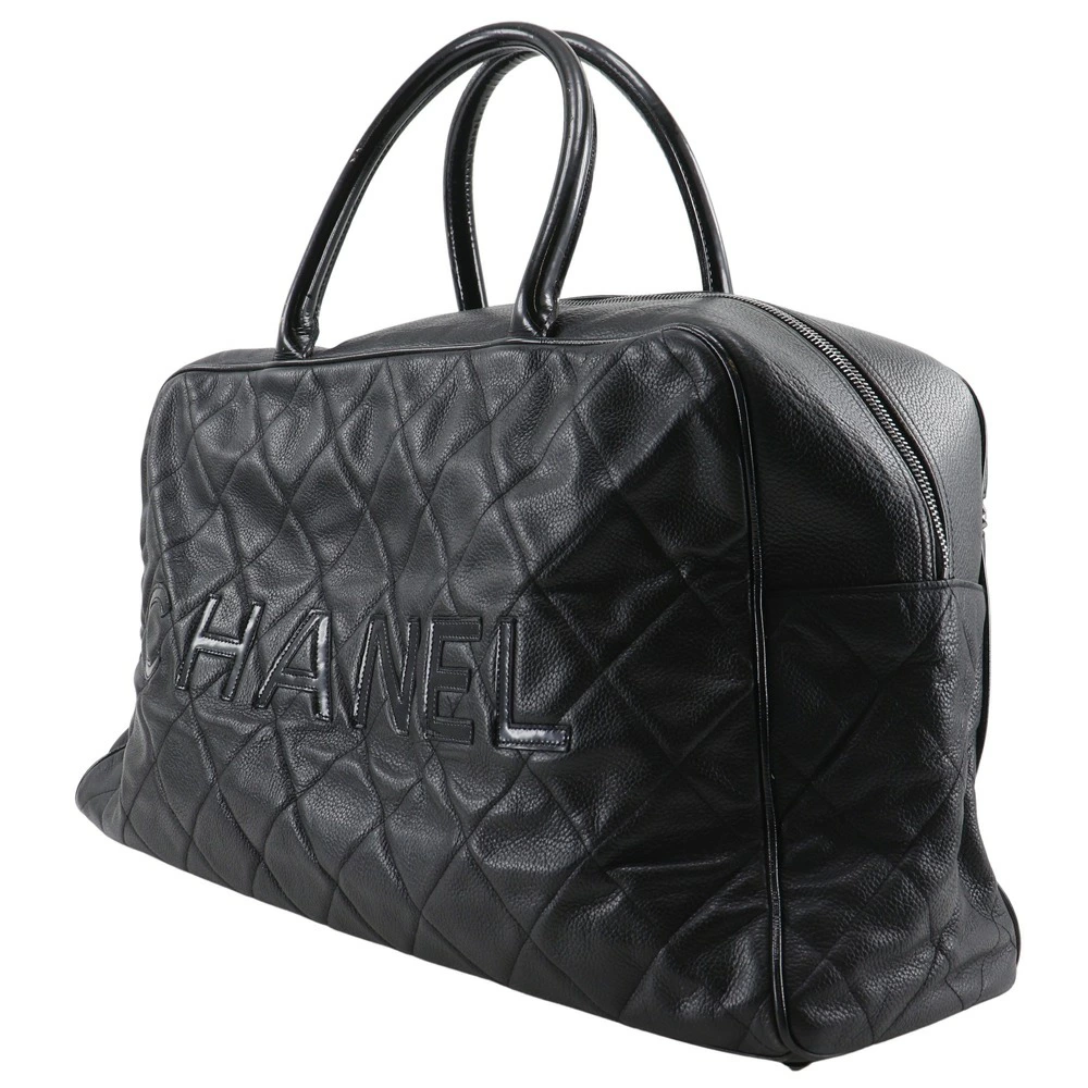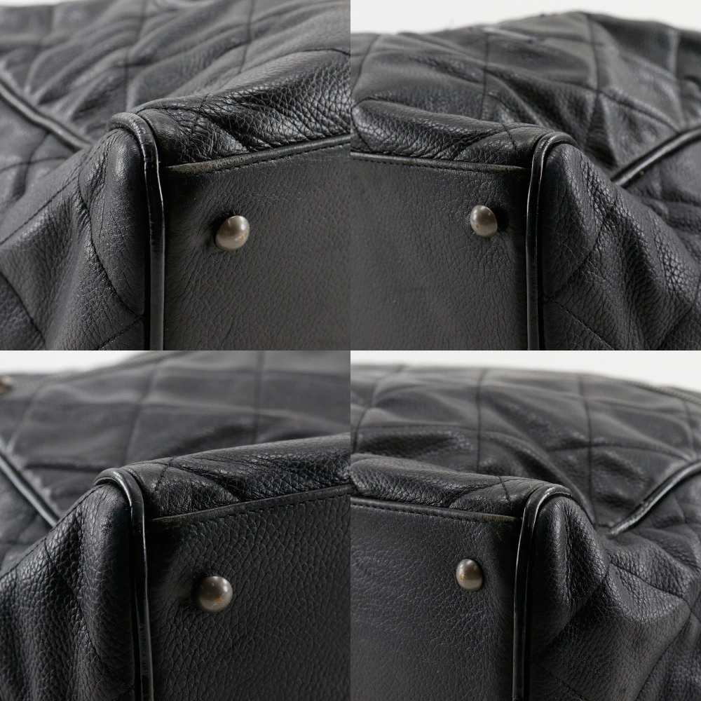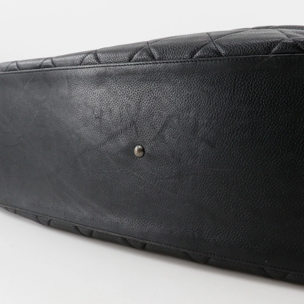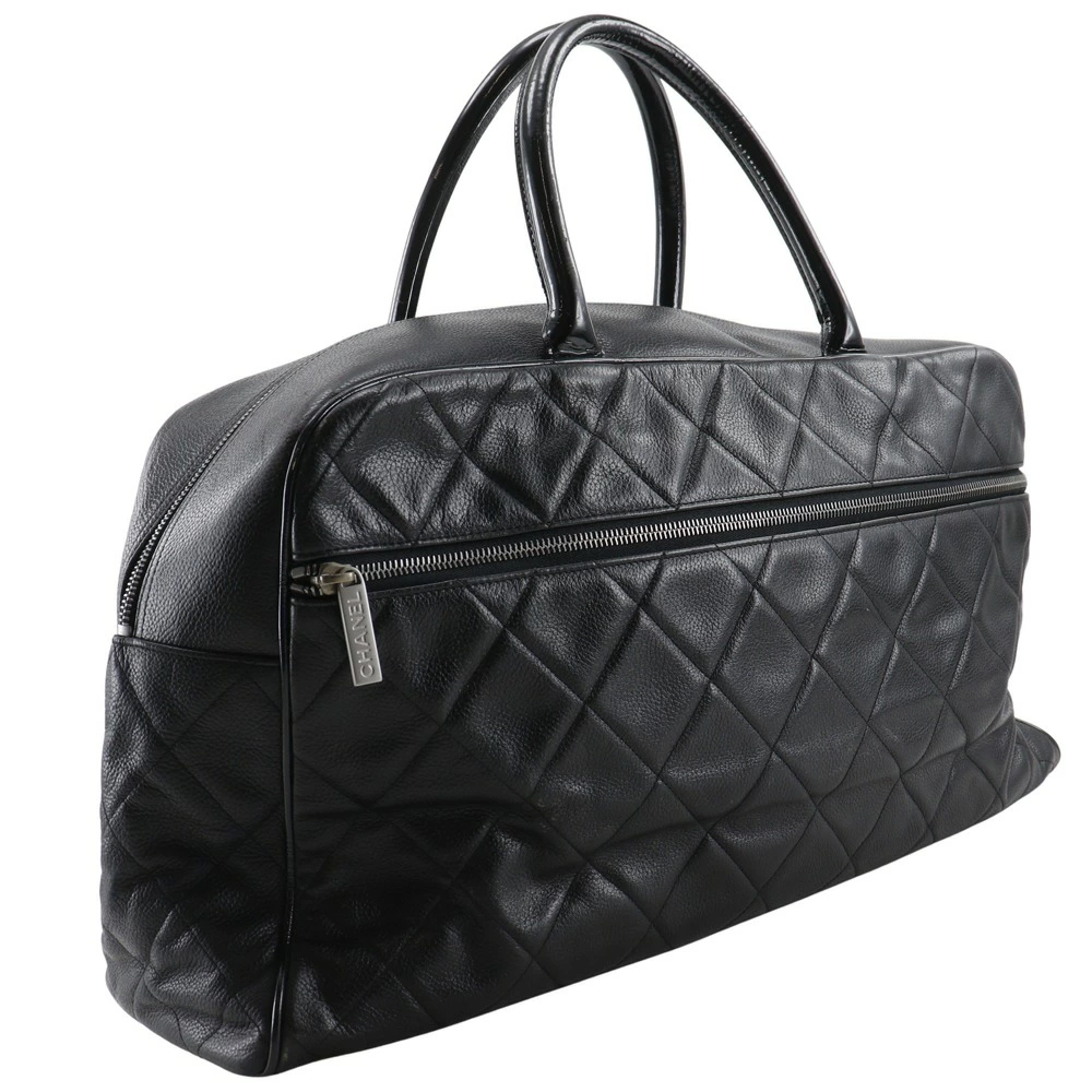 Pre-owned CHANEL Matelasse Boston Bag with Logo, Caviar Leather and Enamel, Black, A4 Size, Zipper closure, Women's