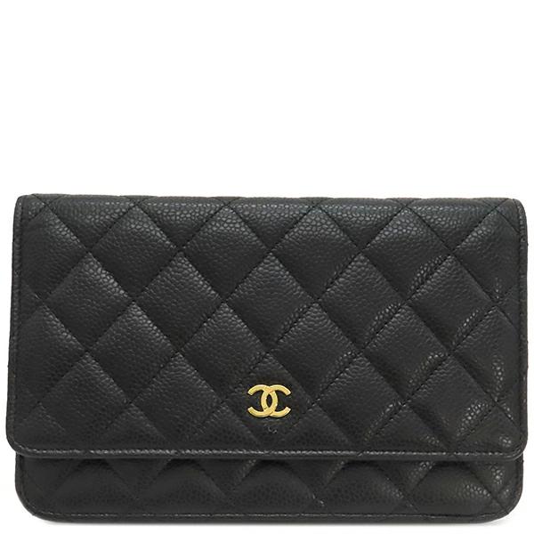 シャネル CHANEL チェーンウォレット マトラッセ チェーンウォレット カーフ キャビアスキン ブラック 黒 ココマーク ゴールド金具 ランダムシリアル AP0250 レディース定番 人気 美品 【中古】