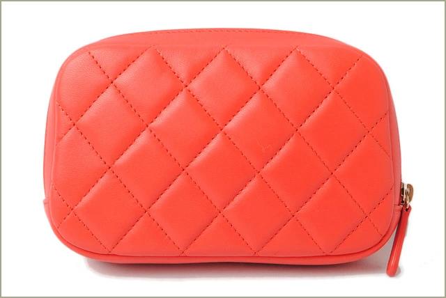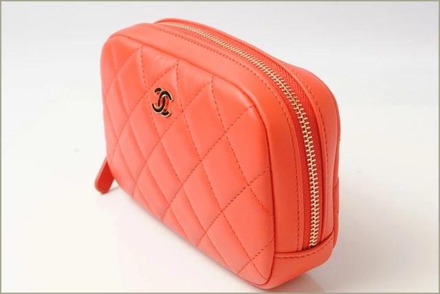 シャネルより、入手困難なキルティングステッチのコスメポーチです!大人気で、直営店でも完売が続いております。コスメ、小物の持ち運びに便利なサイズ。