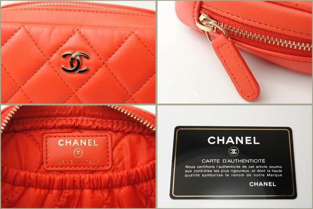 CHANEL マトラッセ ラムスキン コーラルレッド/ゴールド金具