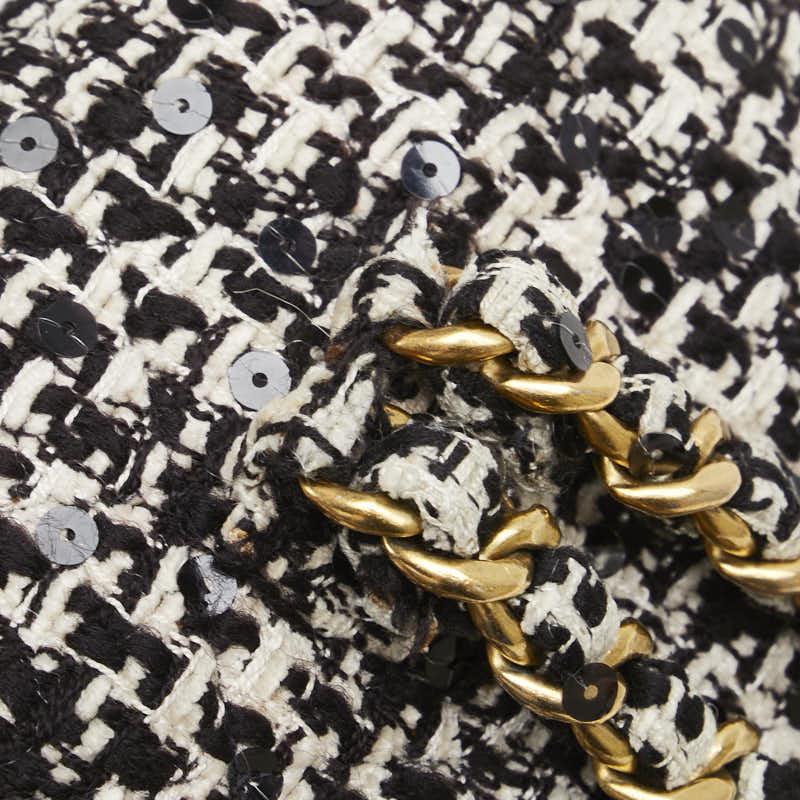 | 状態ランク | B 外側⇒スレ・薄汚れ・若干のノリ染み・型崩れ・全体的に若干の糸切れ・全体的に若干のスパンコール欠損 ショルダー⇒スレ・薄汚れ・ノリ染み・糸切れ 金具⇒小キズ・メッキはがれ フラップ・付け根・裏⇒付け根にひび 開閉口⇒ノリ染み・紐に糸切れ 内側⇒薄汚れ におい⇒香水臭 |