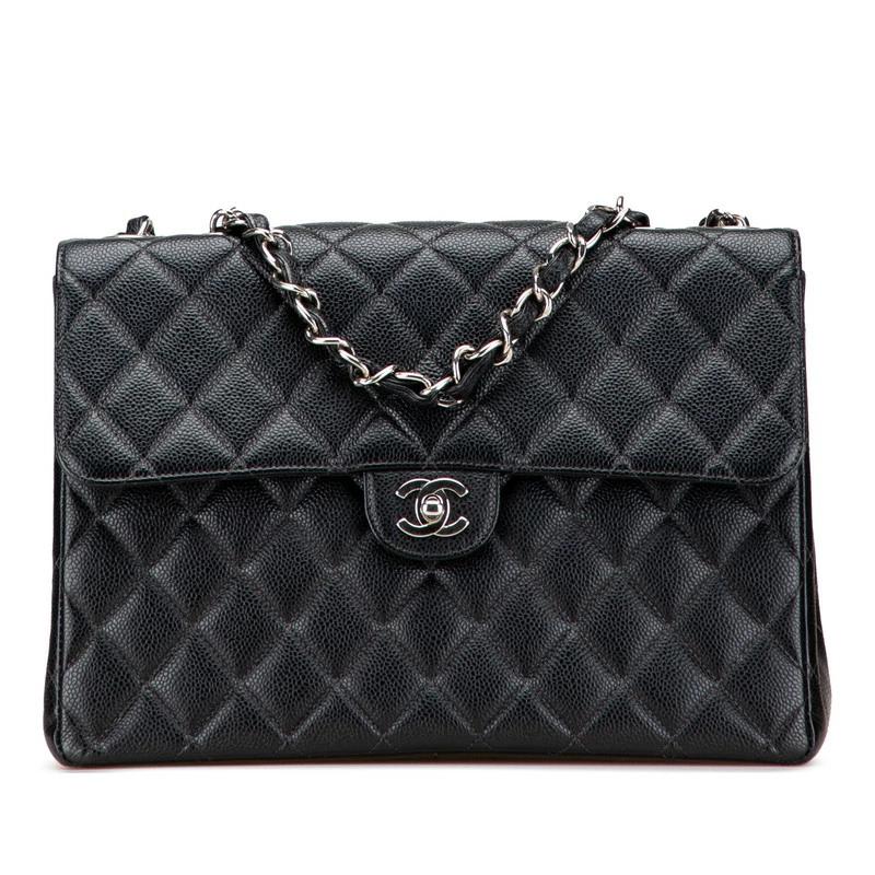 Pre-owned Chanel Matelasse Coco Mark Chain Shoulder Bag in Black Caviar Skin.