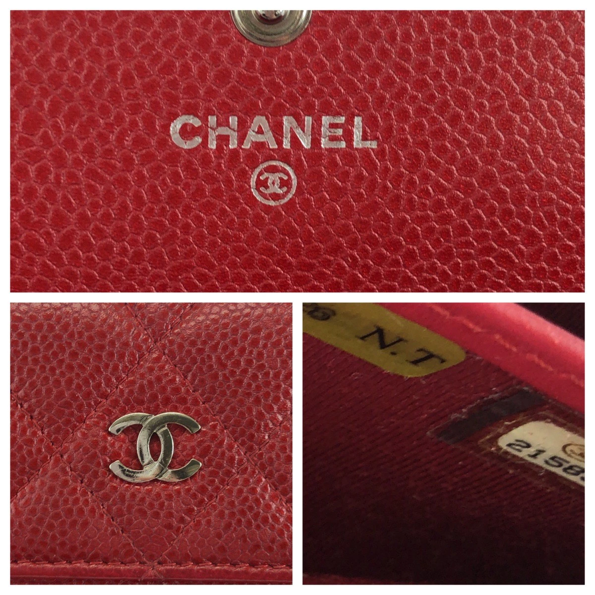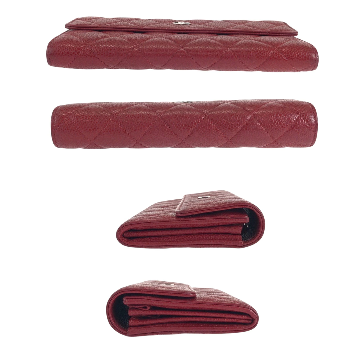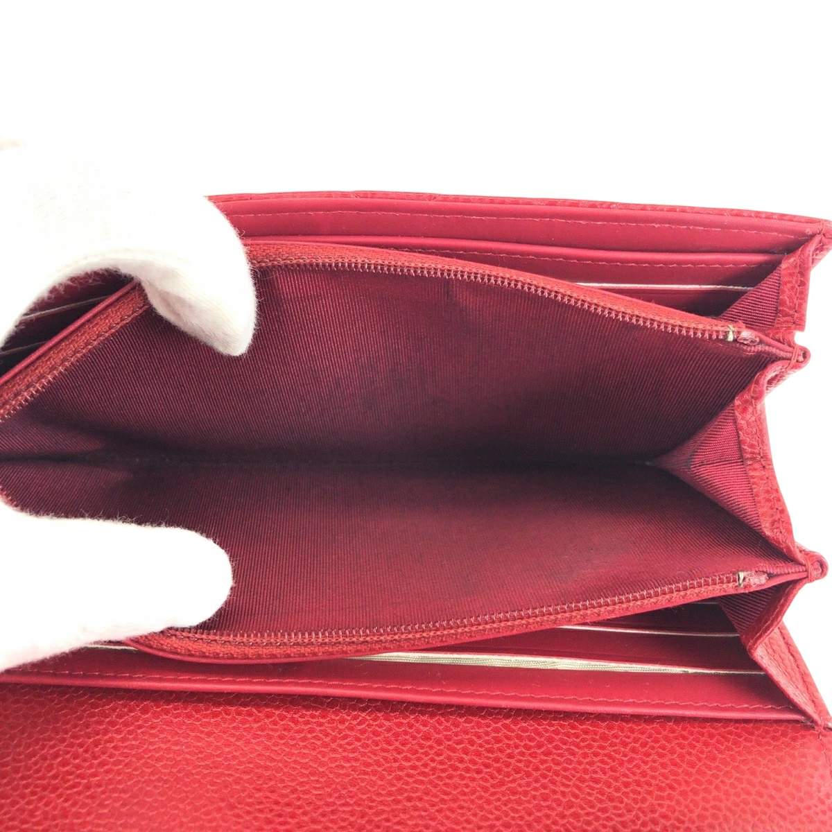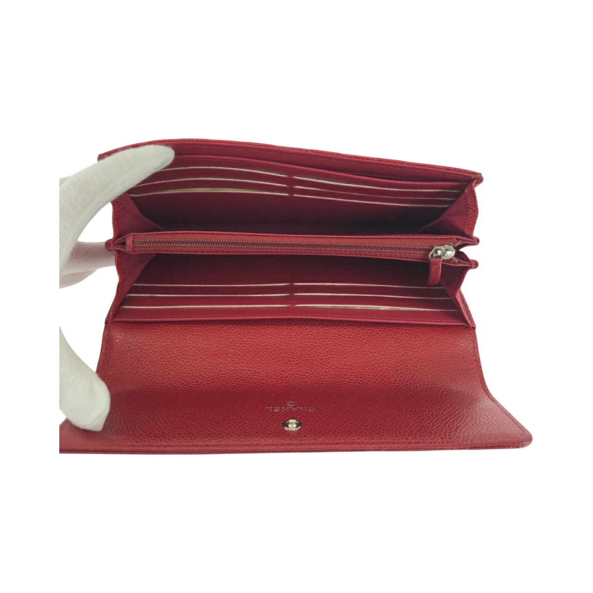 Pre-owned CHANEL Matelasse Coco Mark Red Silver Hardware Caviar Leather Long Wallet 502826 (Women's)