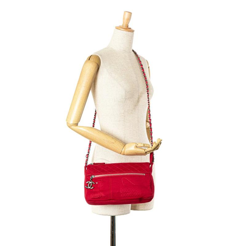 Pre-owned Chanel Matelasse Coco Mark Shoulder Bag, Red Cotton, Women's
