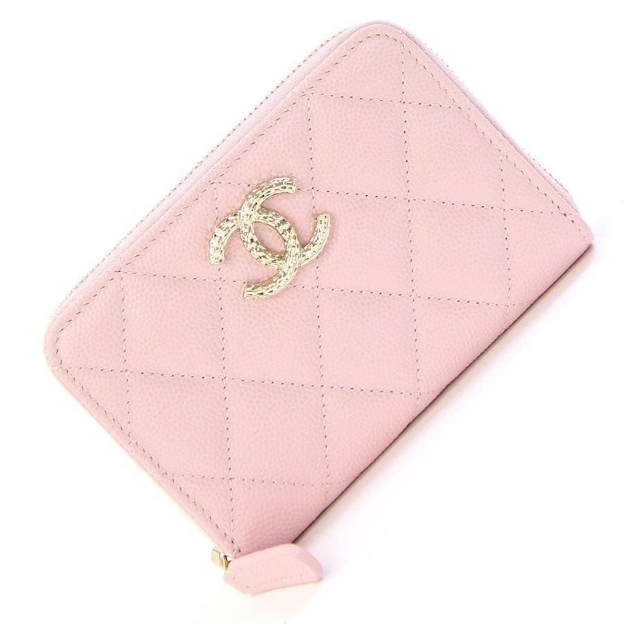 シャネルコインケースマトラッセAP4253ライトピンクキャビアスキン中古ミニ財布コンパクトウォレットカードケースココマークロゴレディースCHANEL