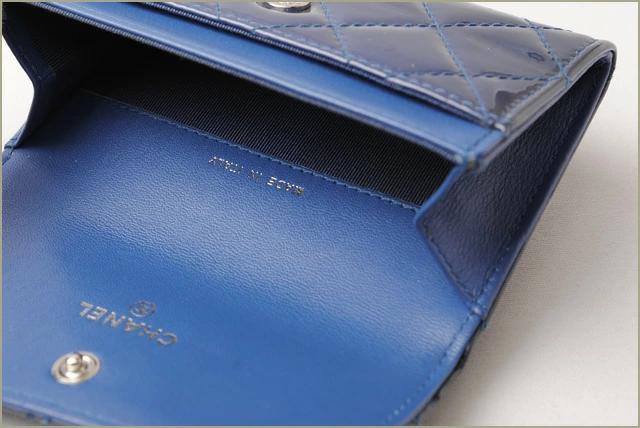 CHANEL マトラッセ パテントレザー ブルー/シルバー金具