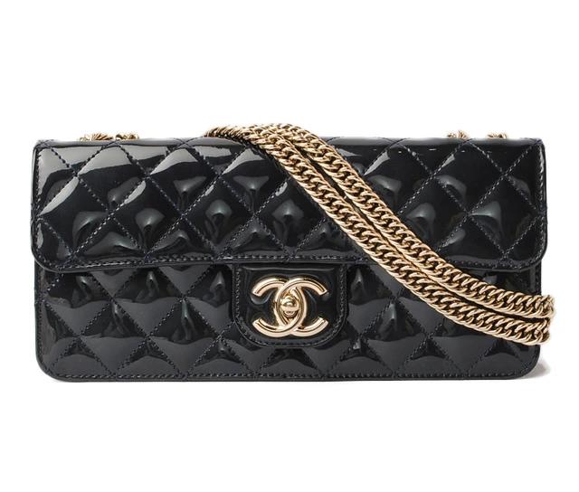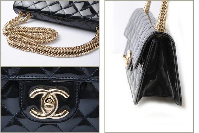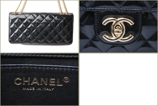 CHANEL マトラッセ キルティング パテントレザー ネイビー ゴールド金具