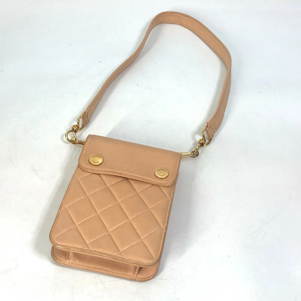 Pre-owned CHANEL Matelasse Quilted Neck Pouch, Smartphone Pouch, Shoulder Bag, Lambskin, Pink, Women's