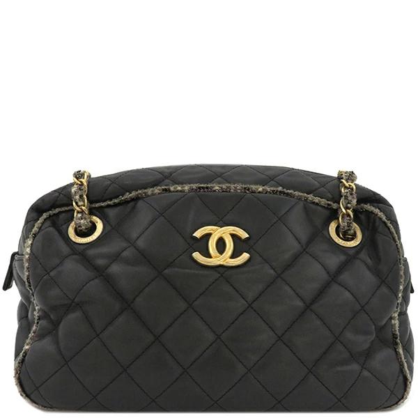【【 シャネル CHANEL ショルダーバッグ マトラッセ ツイードショルダー - ラムスキン/ツイード ブラック黒 ココマーク トート ヴィンテージ金具 - レディース 【中古】】 【シャネル CHANEL】【-】【14******】【14******】