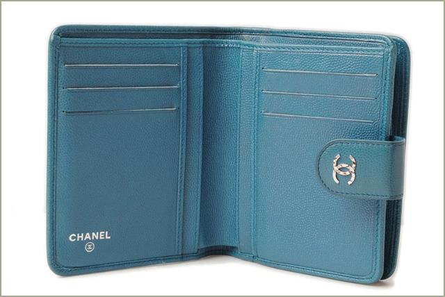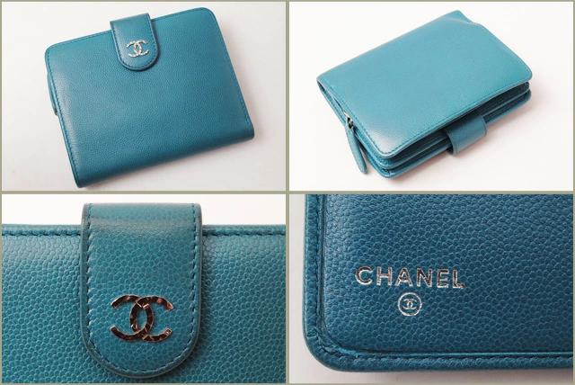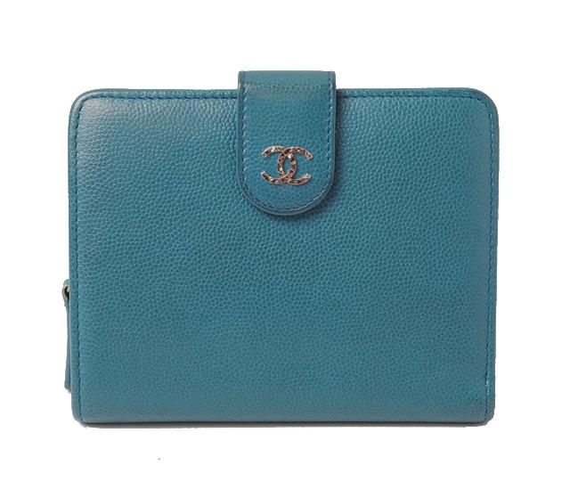 CHANEL 折財布 ミニキャビアスキン セブルガ ブルー