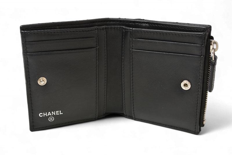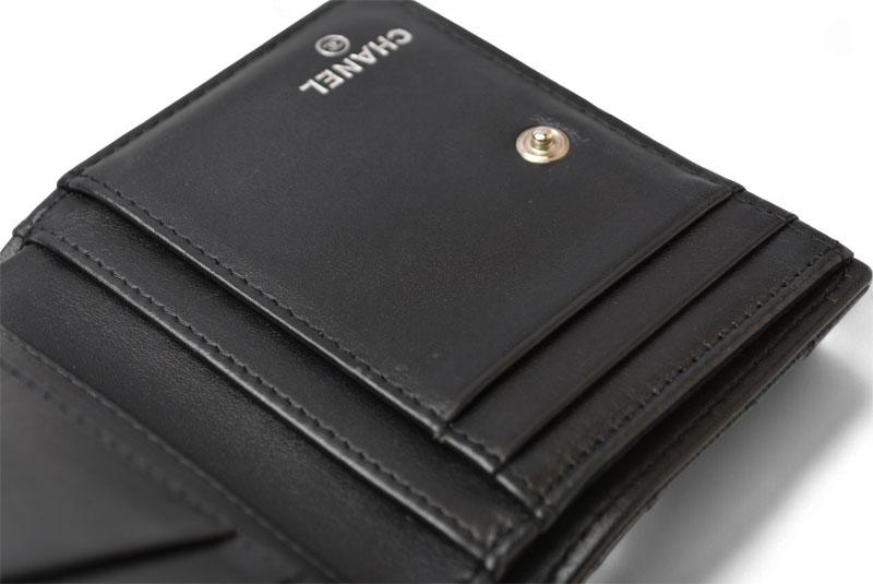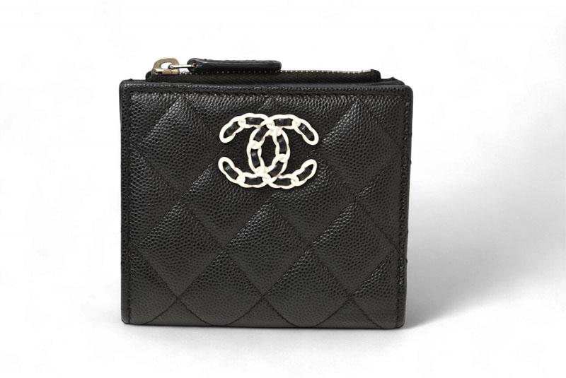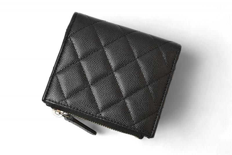 シャネルより、コンパクトサイズで、小ぶりなバッグにも収納が可能です。人気モデル「マトラッセ」二つ折りミニ財布です。耐久性のあるキャビアスキンを使用し、手触りの良さと上品な光沢感が特徴。フロントにはブランドアイコン「CCロゴ」を配し、シンプルながらラグジュアリーな存在感を演出します。コンパクトサイズながらカードポケットや小銭入れを備え、日常使いに最適。バッグの中でも邪魔にならず、収納力も十分です。
