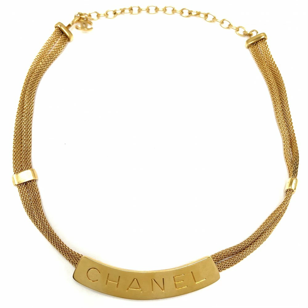 Pre-owned Chanel necklace for women, featuring the Coco Mark logo, choker, and adjustable strap. Approximately 26.9g. Excellent condition, 1998.