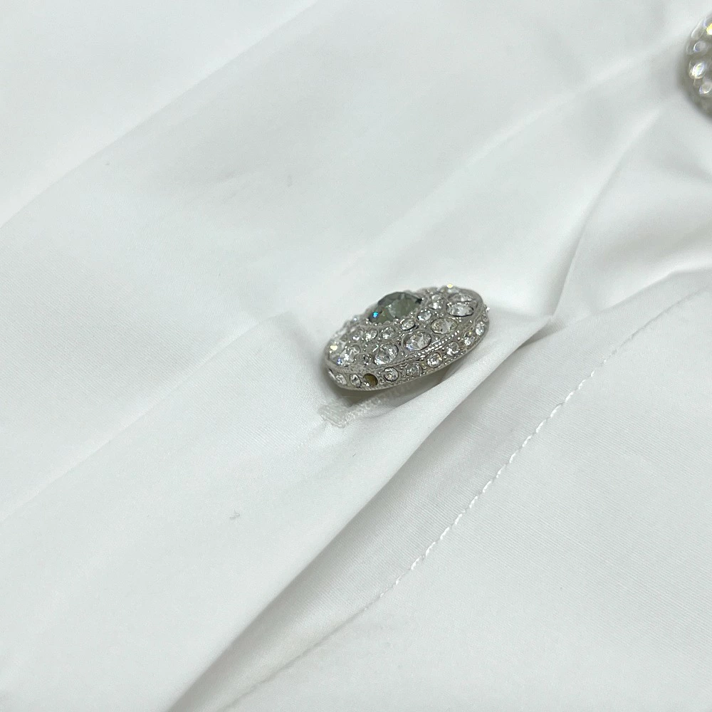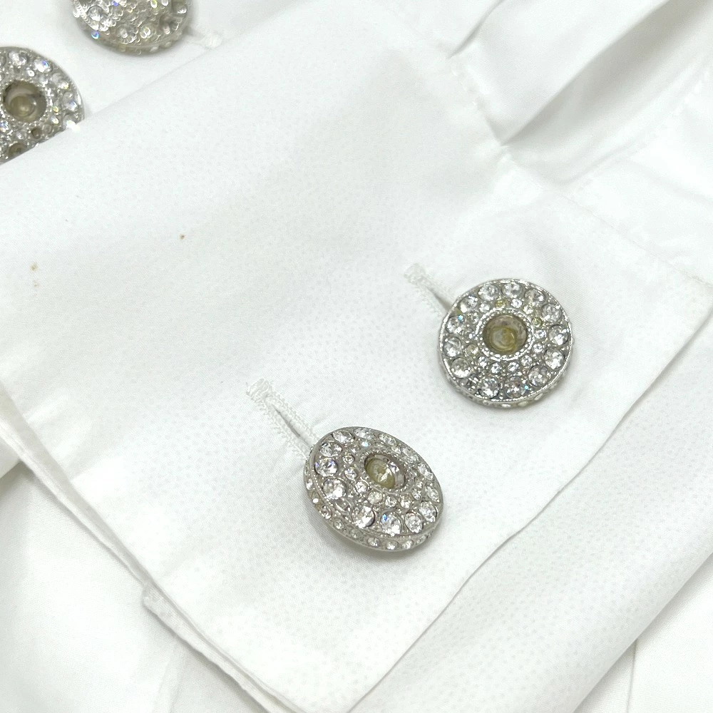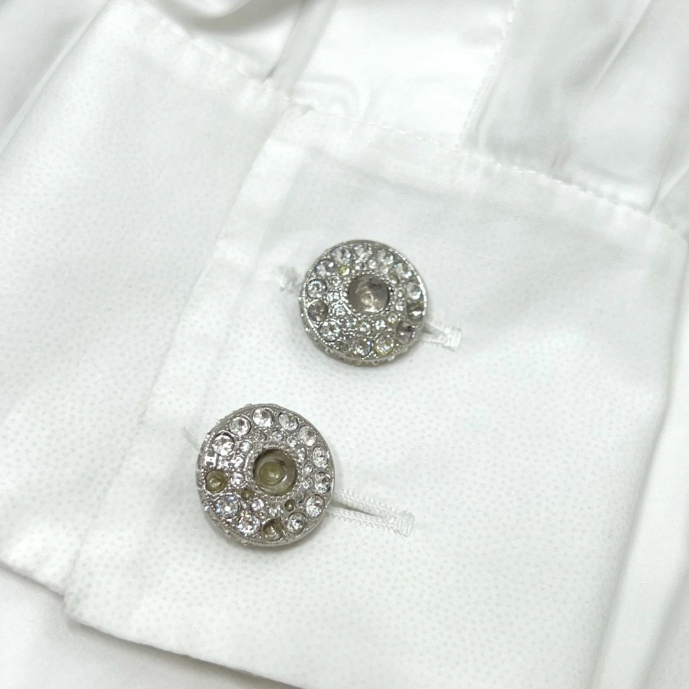 | 状態コメント | 袖口・胸元ボタンのストーン取れている箇所あり。袖口10cmほど短くお直しされています。(カットされた布2枚付属) |