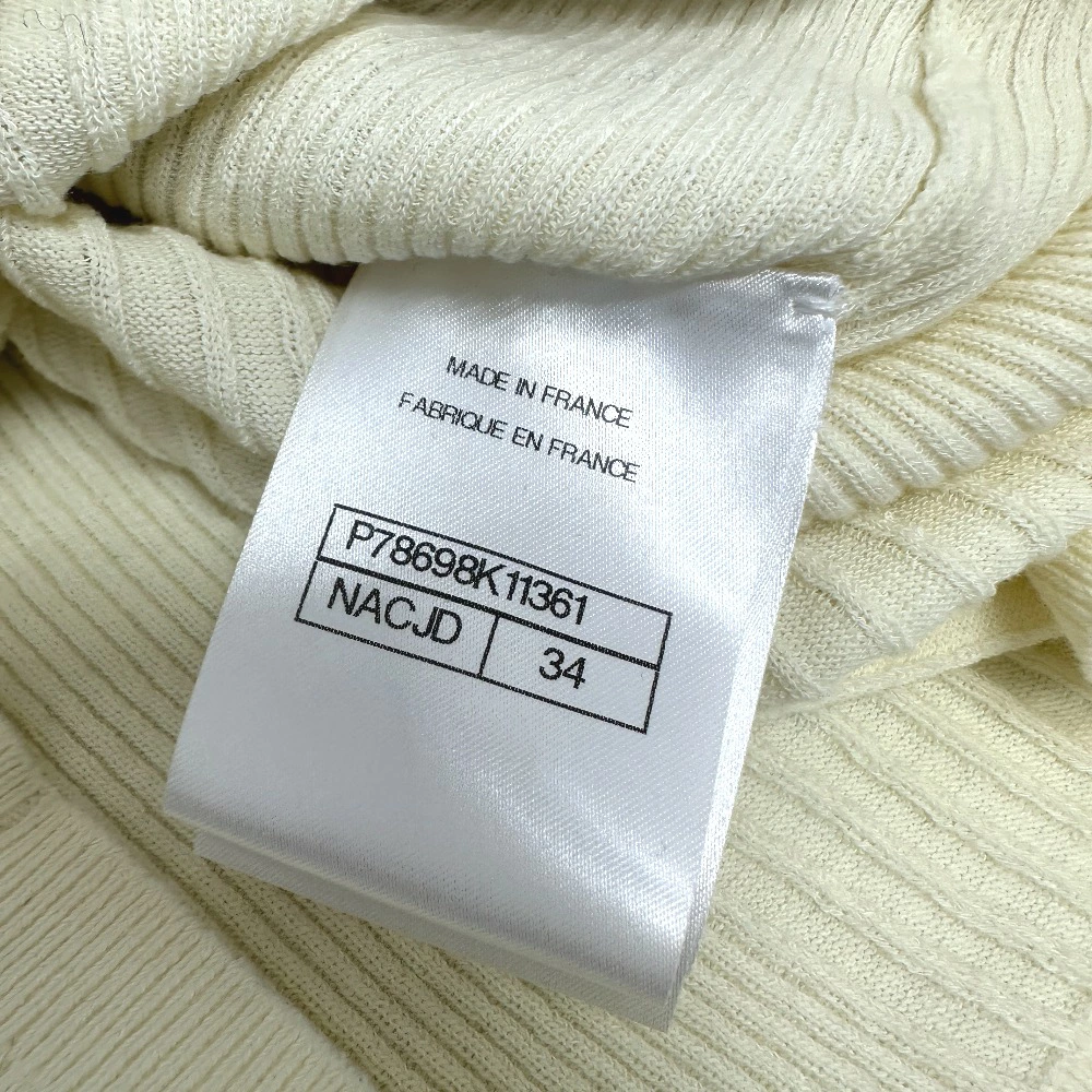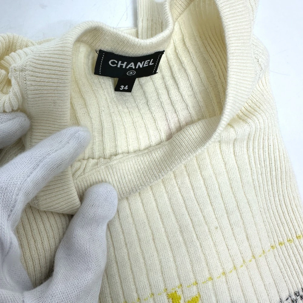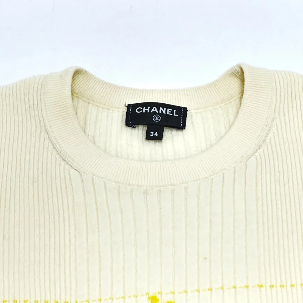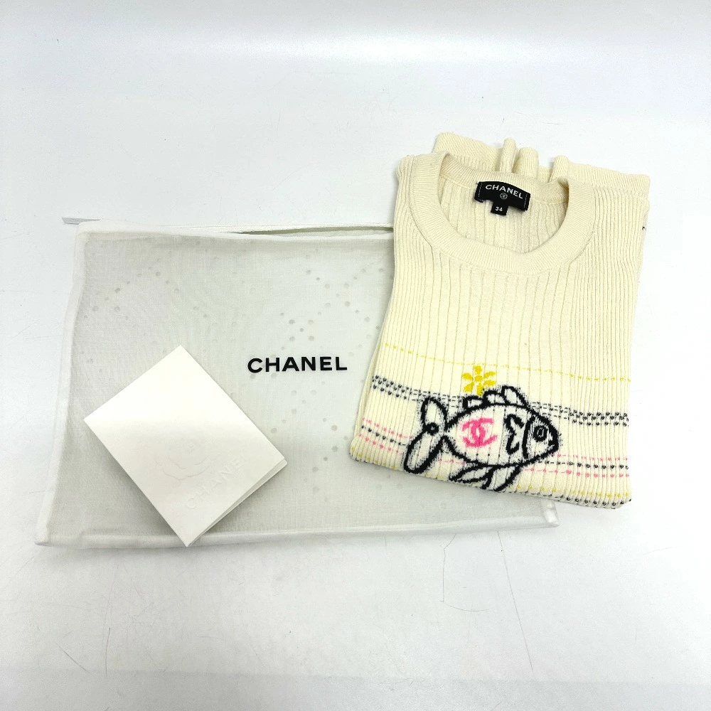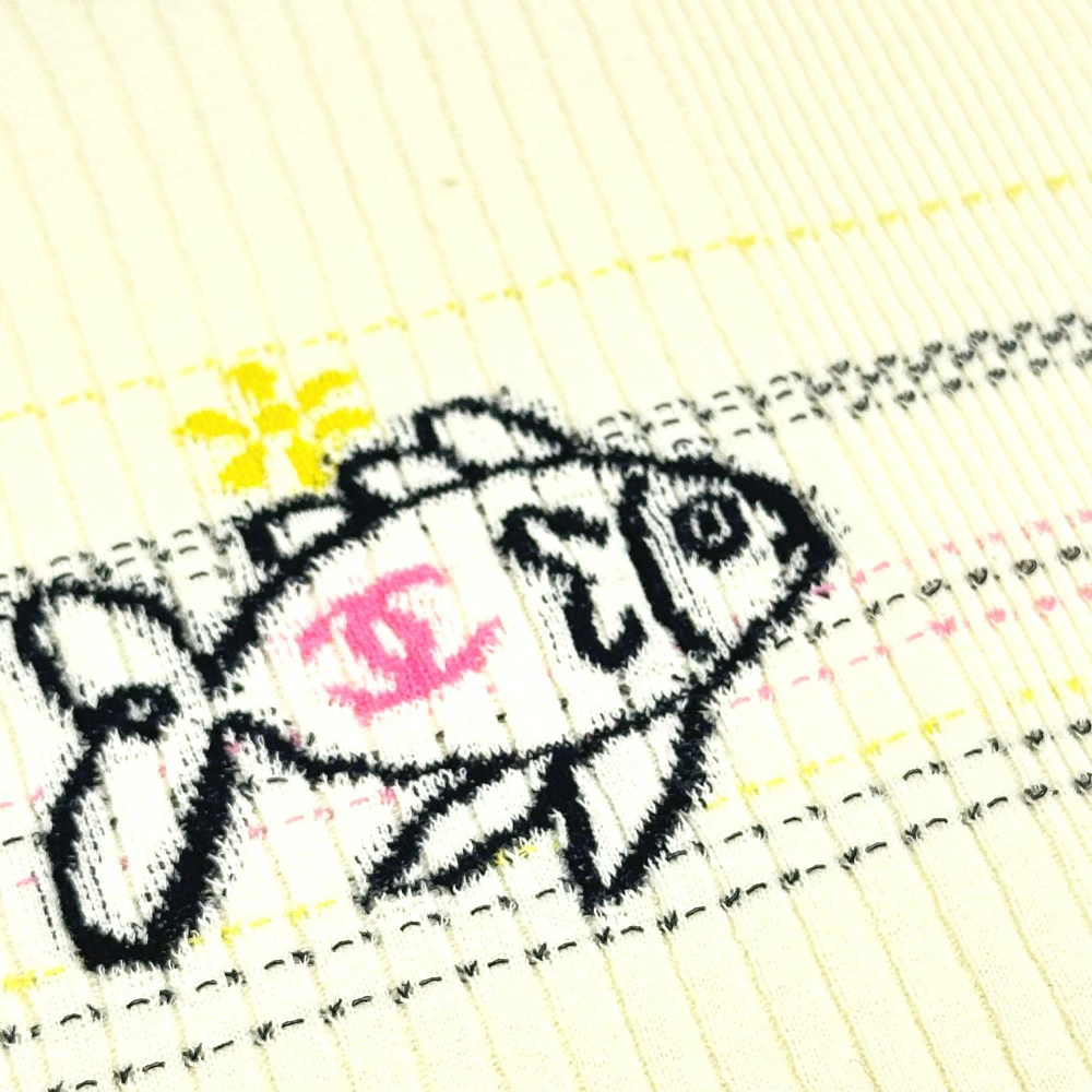 Pre-owned CHANEL P78698 2024/25 Cruise Collection Fish Design Apparel Top, Cotton Knit Short Sleeve T-Shirt, White, Women's