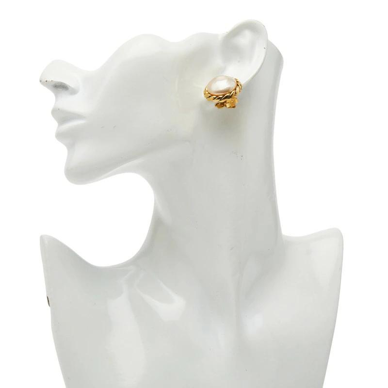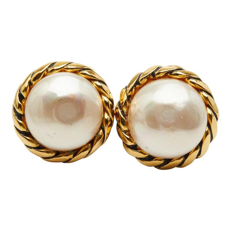 Pre-owned Chanel pearl earrings, gold plated, for women.