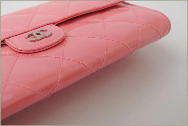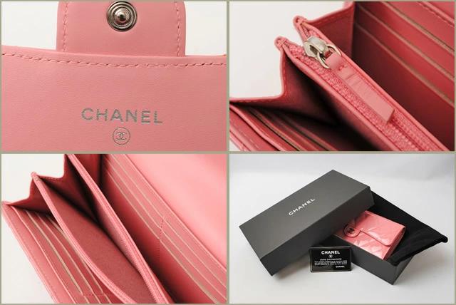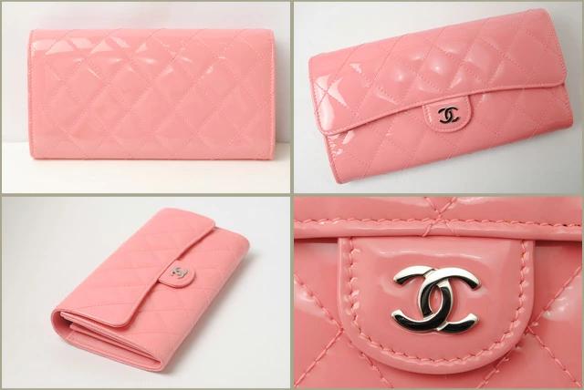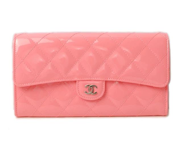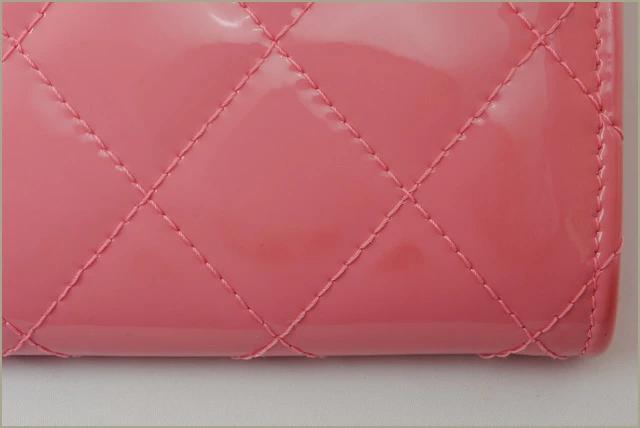 CHANEL 長財布 キルティング マトラッセ パテントレザー A80758 ローズピンク系