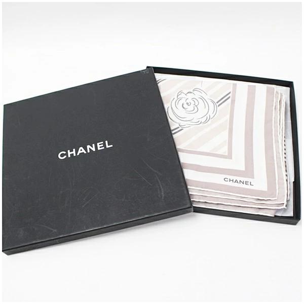 | 商品名 | シャネル スカーフ ベージュ×ホワイト ロゴ ストライプ 中古 Aランク CHANEL |