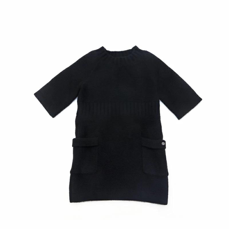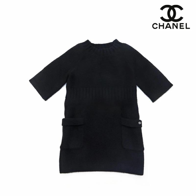 Pre-owned CHANEL short-sleeved knit dress in black wool (size 36, item number 06A, 2006, eit1431).