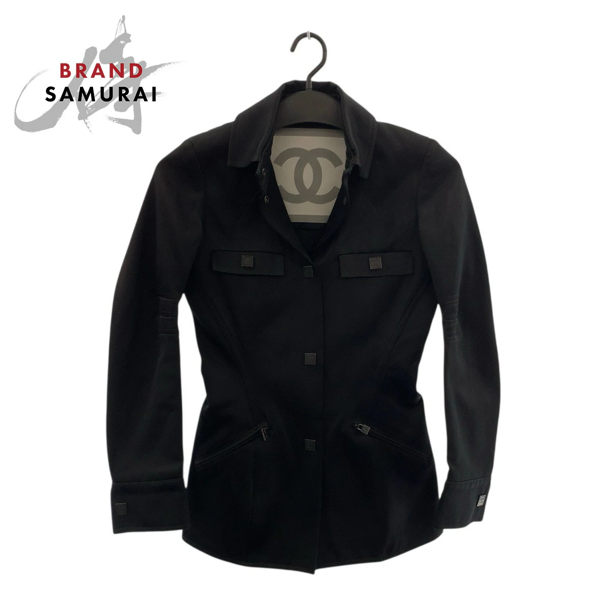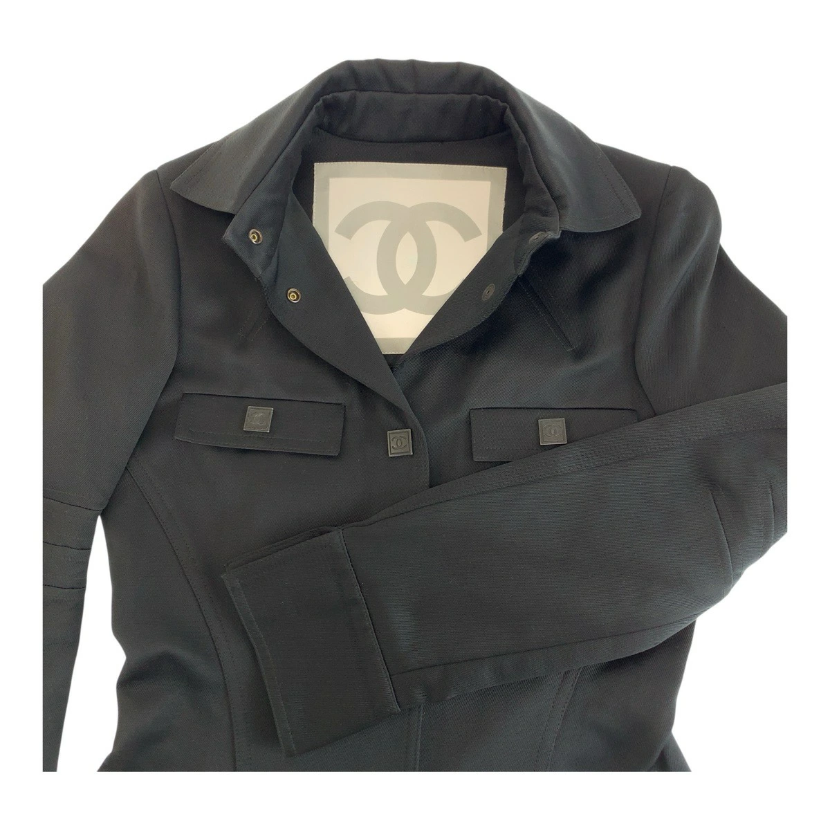 Pre-owned CHANEL Sport Line Coco Mark Jacket, Size 34, Black, Cotton/Silk, P29264, Women's, 503979.