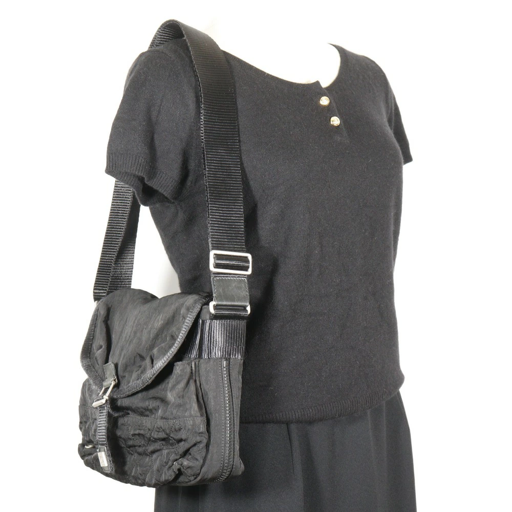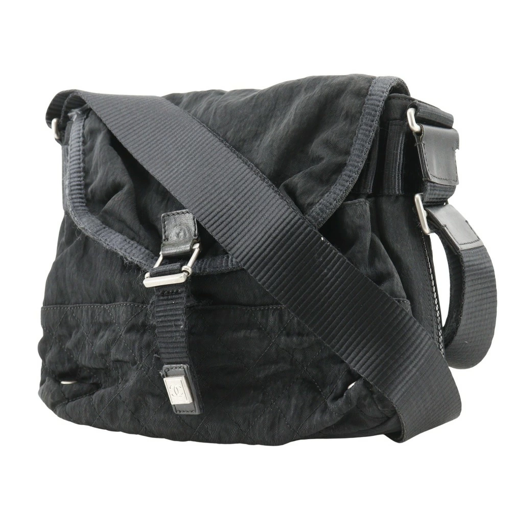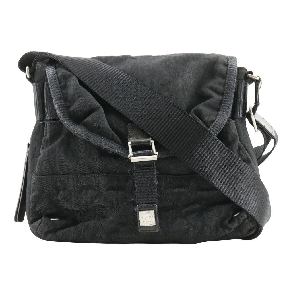 Pre-owned Chanel Sport Line shoulder bag, Matelasse nylon, made in Italy, black, crossbody, snap closure, for women. Condition: B-rank.