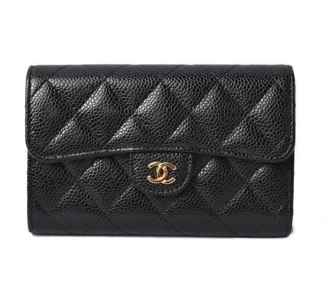 シャネルより、大人気のキルティングシリーズ。傷の目立ちにくい、キャビアスキン素材です。年齢層を問わずお使いいただける、ブラックカラーです!どんな服装にも合わせやすく、シックで大人の女性の印象に!スマートに決まります!コンパクトながらポケットも充実しており、財布の中身が多くなりがちな方も、すっきり整頓できます。