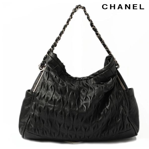 シャネルよりクルーズラインのチェーンショルダーバッグ/トートバッグです。ハードな印象のパンチングレザーと対照的な女性らしいギャザー使いが、印象的!柔らかな手触りで高級感があります。A4サイズ・雑誌の収納も可能で、普段使いからリゾートや、バカンスにも最適です!