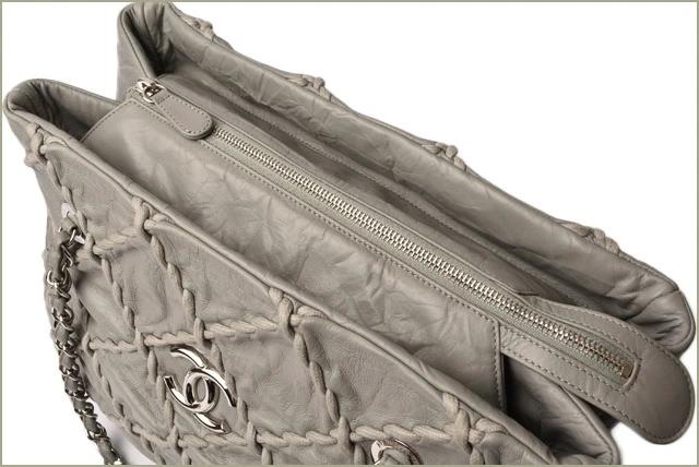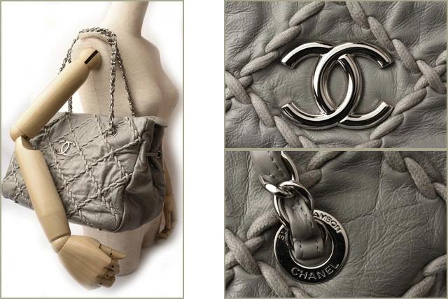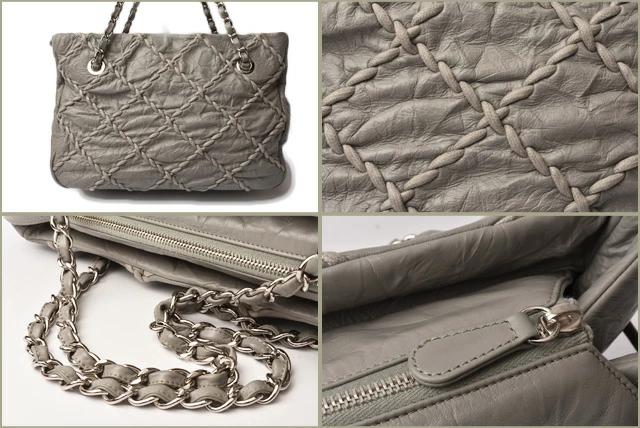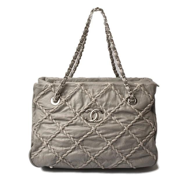 CHANEL チェーンバッグ ダブルステッチ グレー/シルバー金具