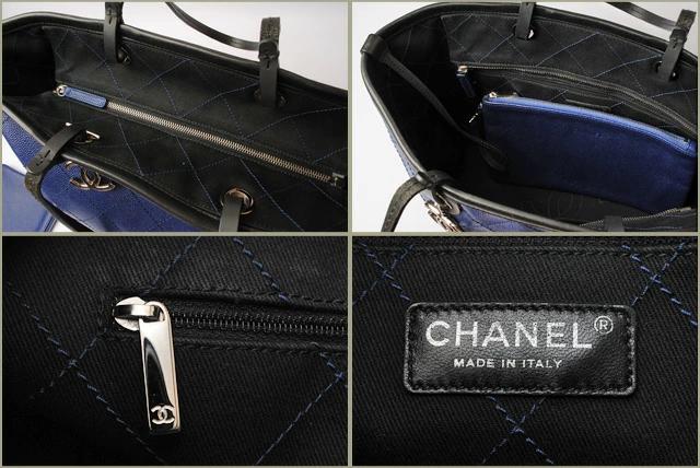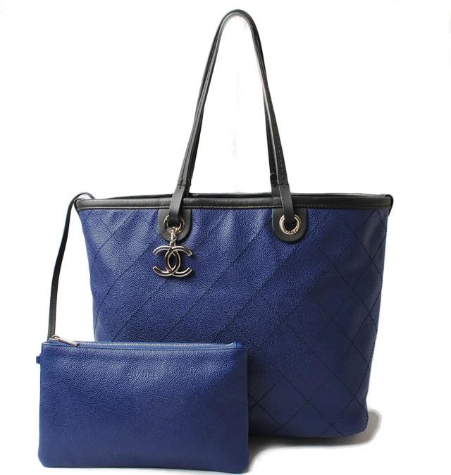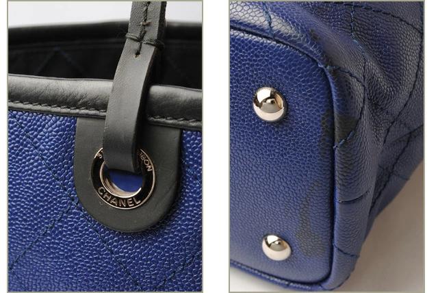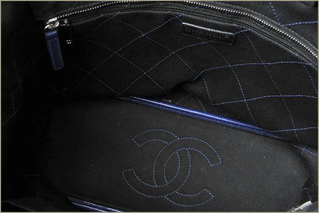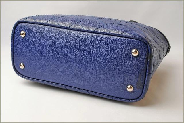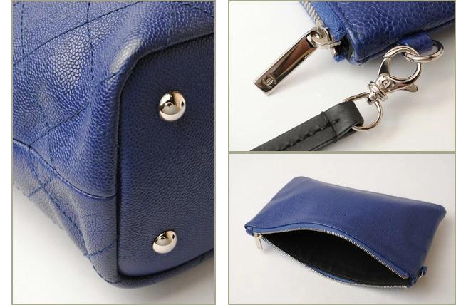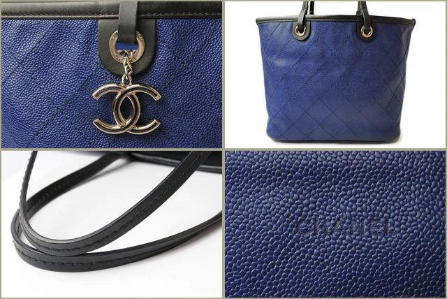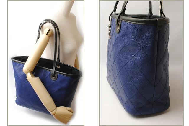 CHANEL マトラッセステッチ キャビアスキン ブルー/ブラック シルバー金具 A92212