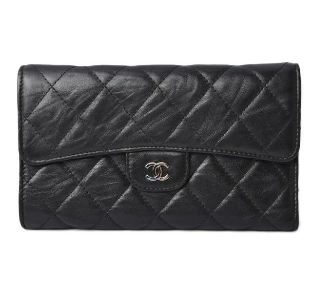 CHANEL 長財布 A31506 シワ加工マトラッセ/ラムスキン ブラック/ブラック