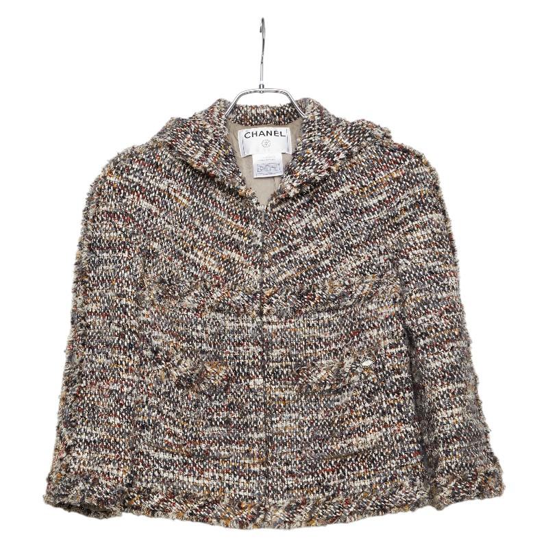 - シャネル ツイード ジップアップ パーカー サイズ38 ブラウン マルチカラー ナイロン コットン ウール レディース CHANEL 【中古】
