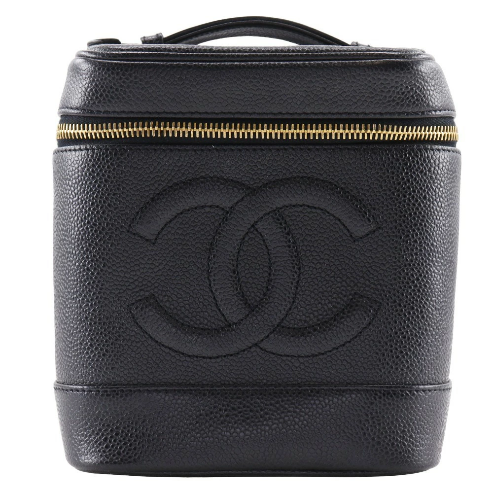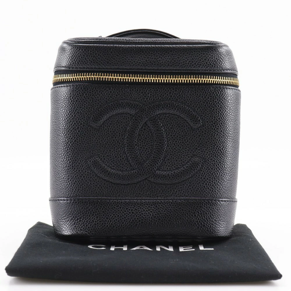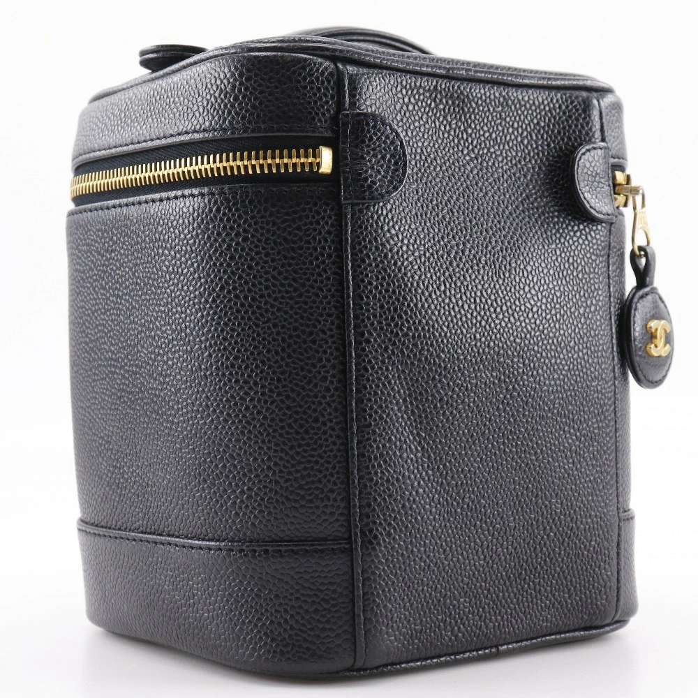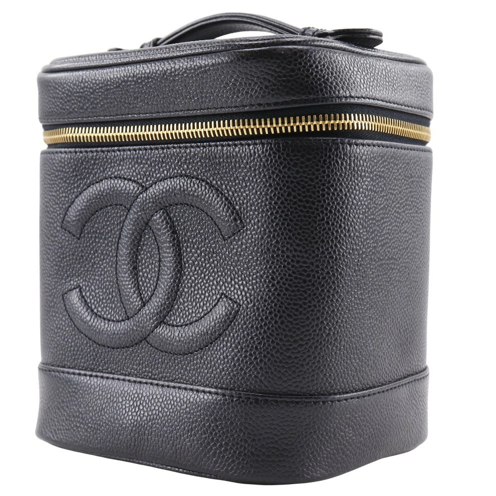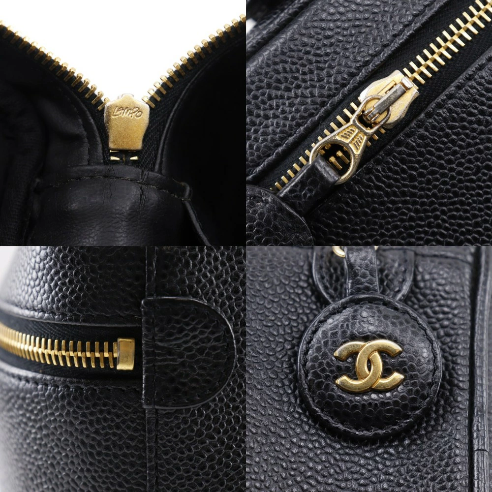 Pre-owned CHANEL Vanity Pouch with Coco Mark, Handbag A01998, Caviar Leather, Made in France, Black, Zipper closure, Women's