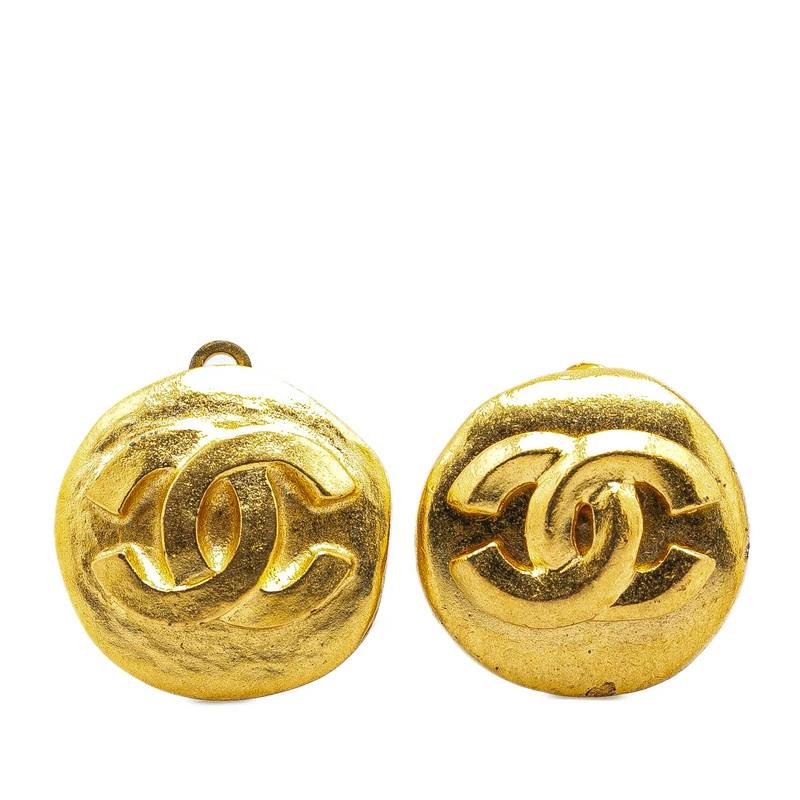 Pre-owned Chanel Vintage Coco Mark Earrings, Gold Plated, Women's