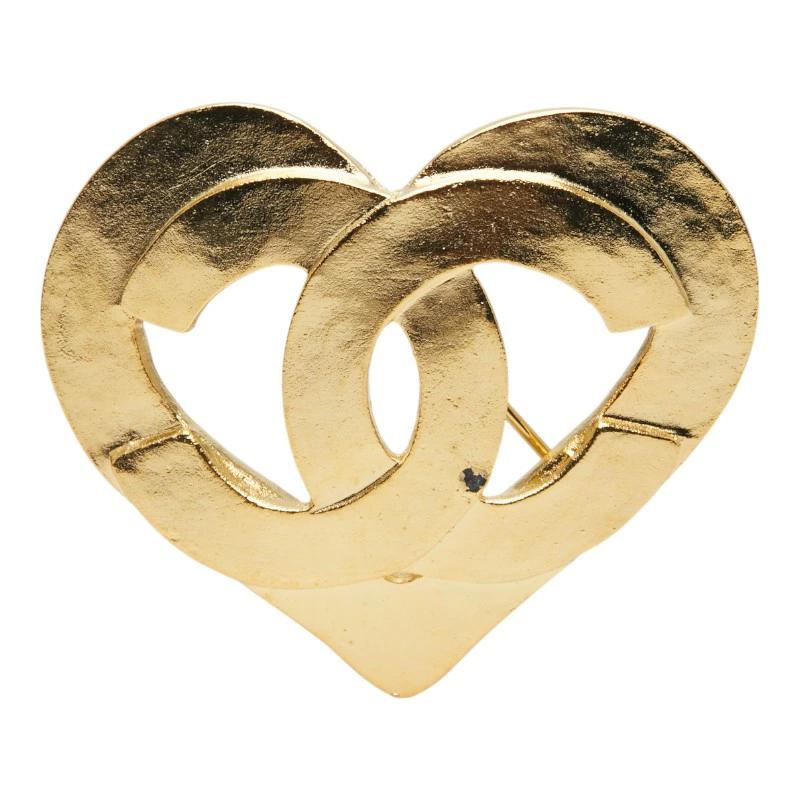 Pre-owned Chanel Vintage Coco Mark Heart Brooch, Gold Plated, Women's