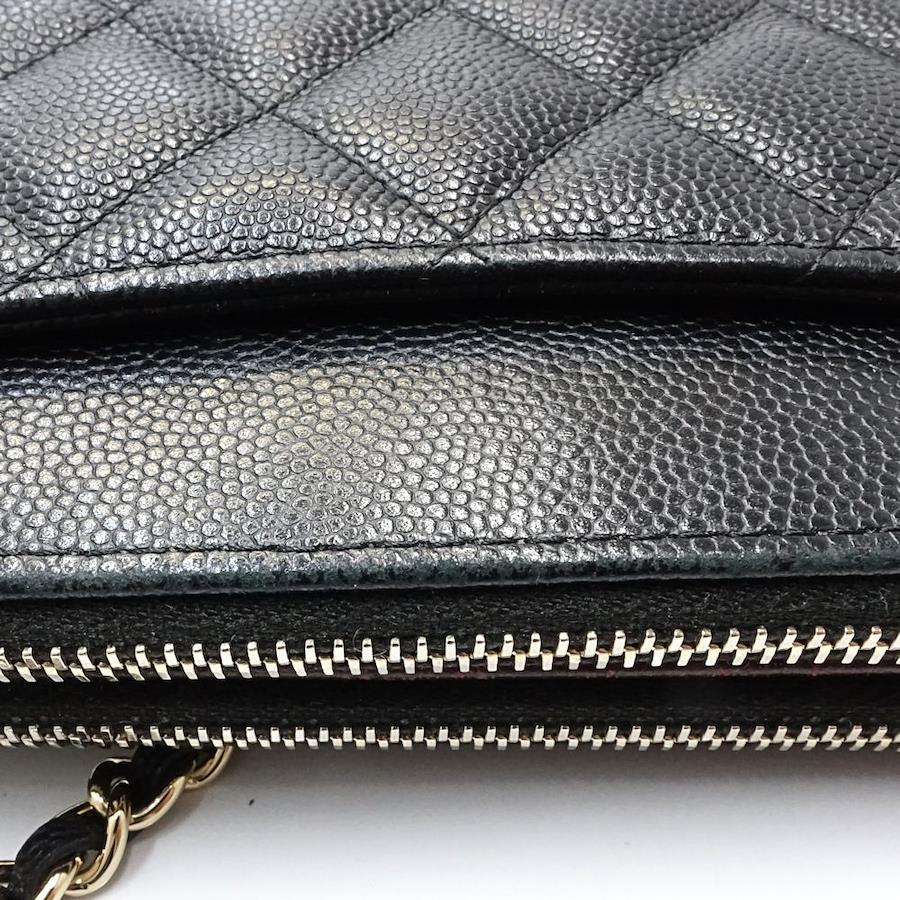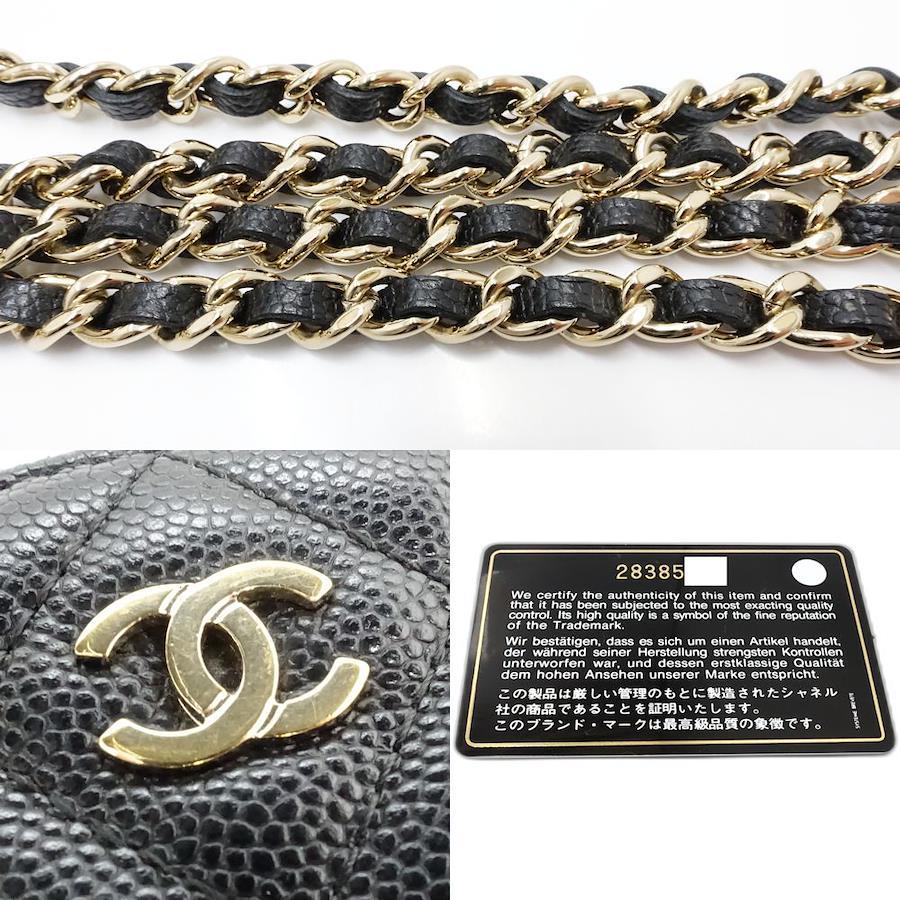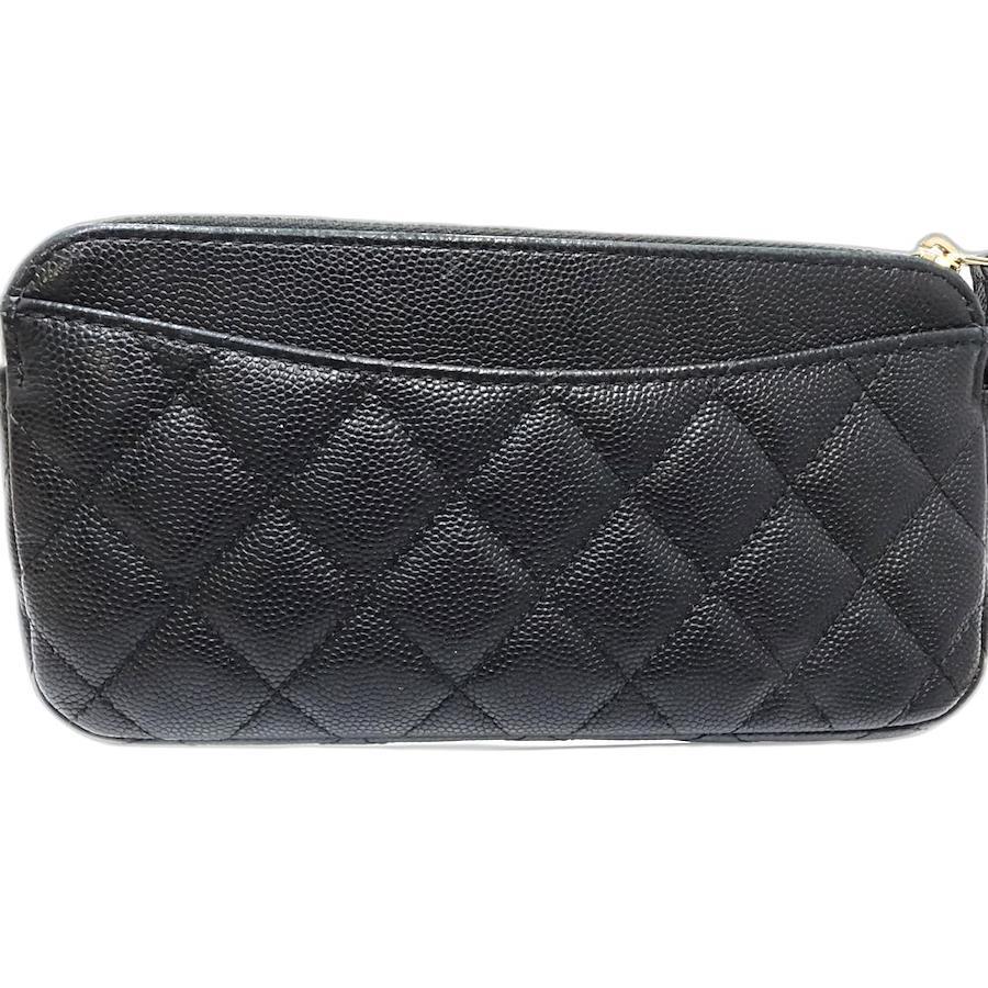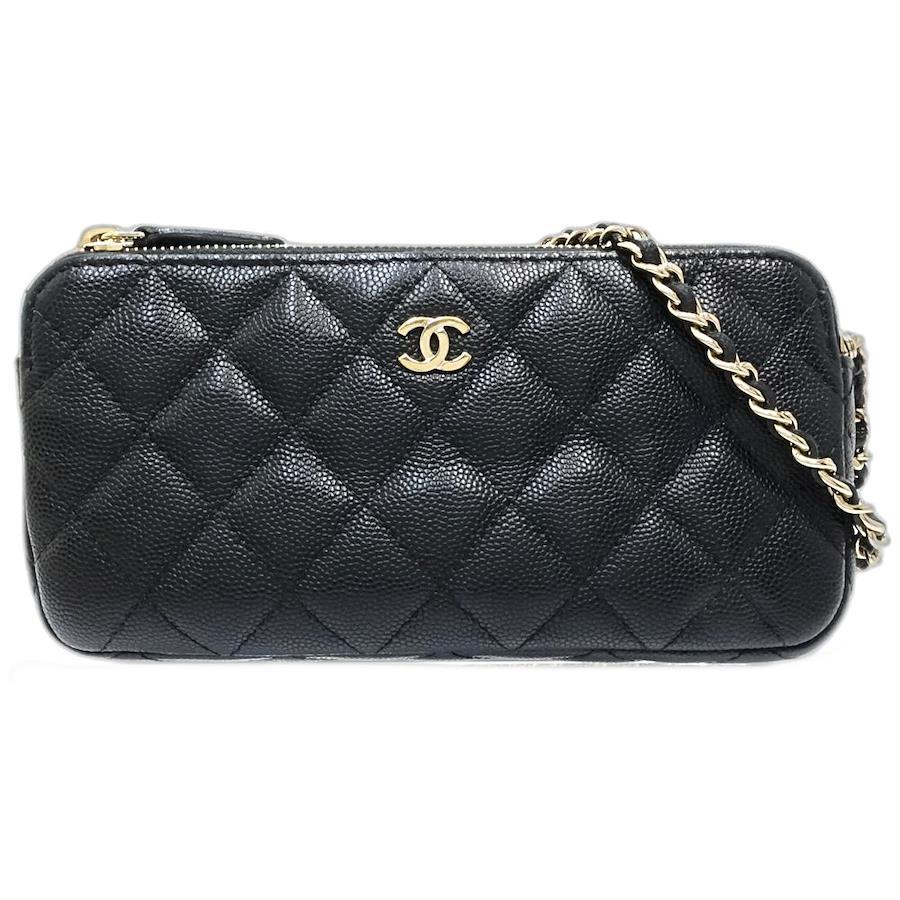 Pre-owned CHANEL Wallet Chain A82527 Double Zip Chain Wallet Matelasse Caviar Leather Black Women's /181682