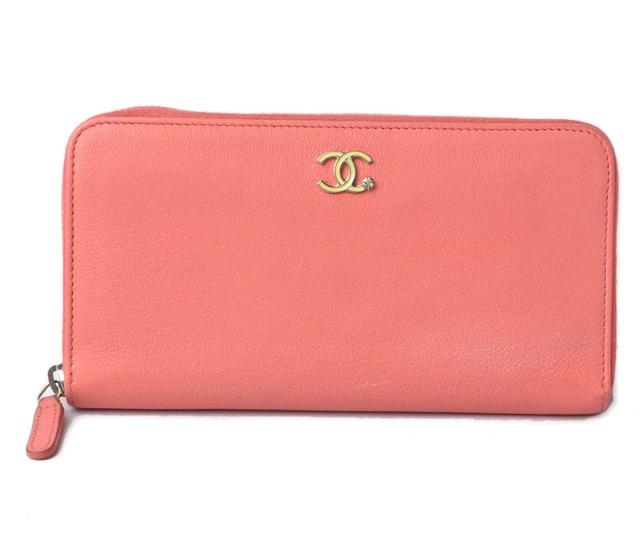 CHANEL 長財布/ラウンドファスナー ローズ/ラッキークローバーA84204