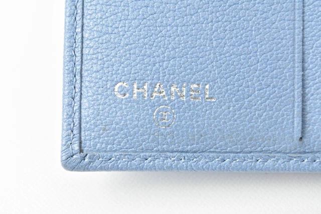 CHANEL 折財布 カメリア型押し ラベンダー/シルバー