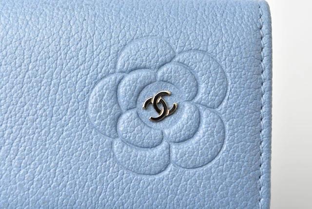 シャネルより、折財布です。カメリアがエンボス加工でデザインされた人気の高いシリーズ。洗練された大人の女性の印象に。コンパクトながらポケットも充実しており、財布の中身が多くなりがちな方も、すっきり整頓できます。