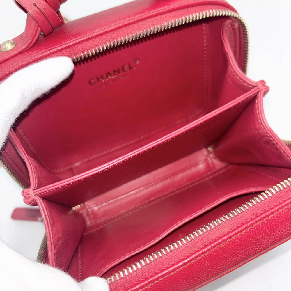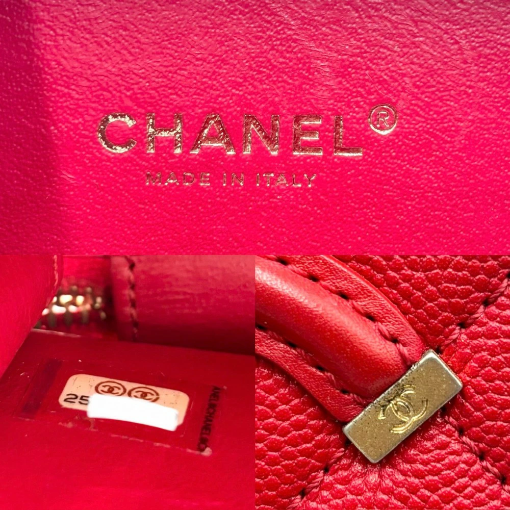 Pre-owned Chanel Women's Matelasse CC Filigree Vanity Bag, Mini Pochette, Shoulder/Crossbody Bag, Coco Mark, Coco, Caviar Leather, Red, Gold Hardware.