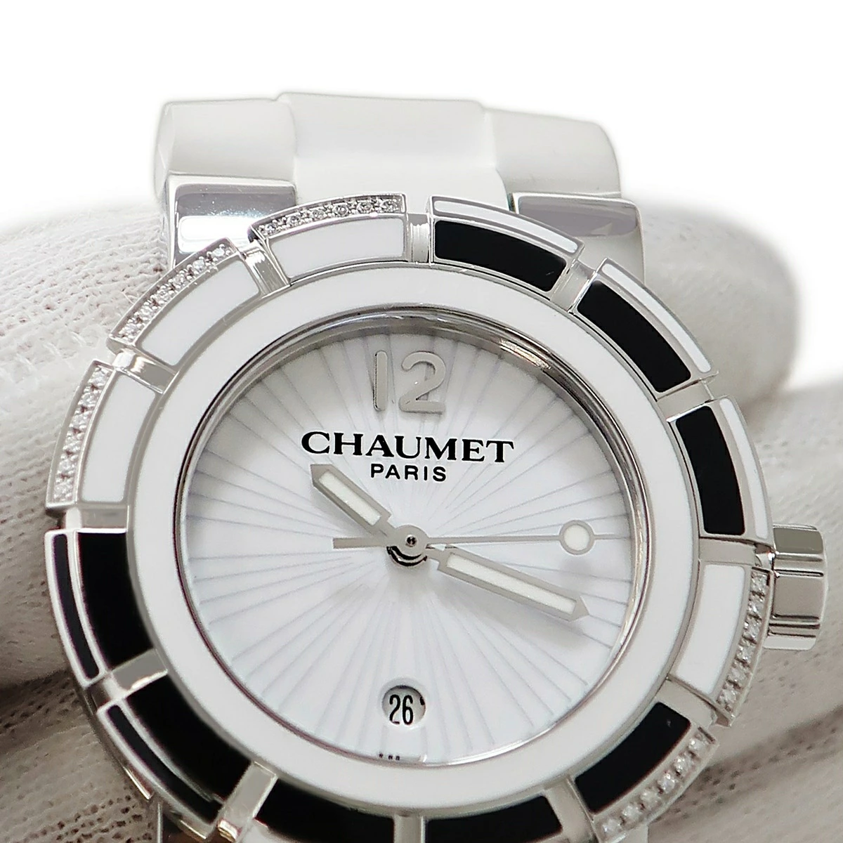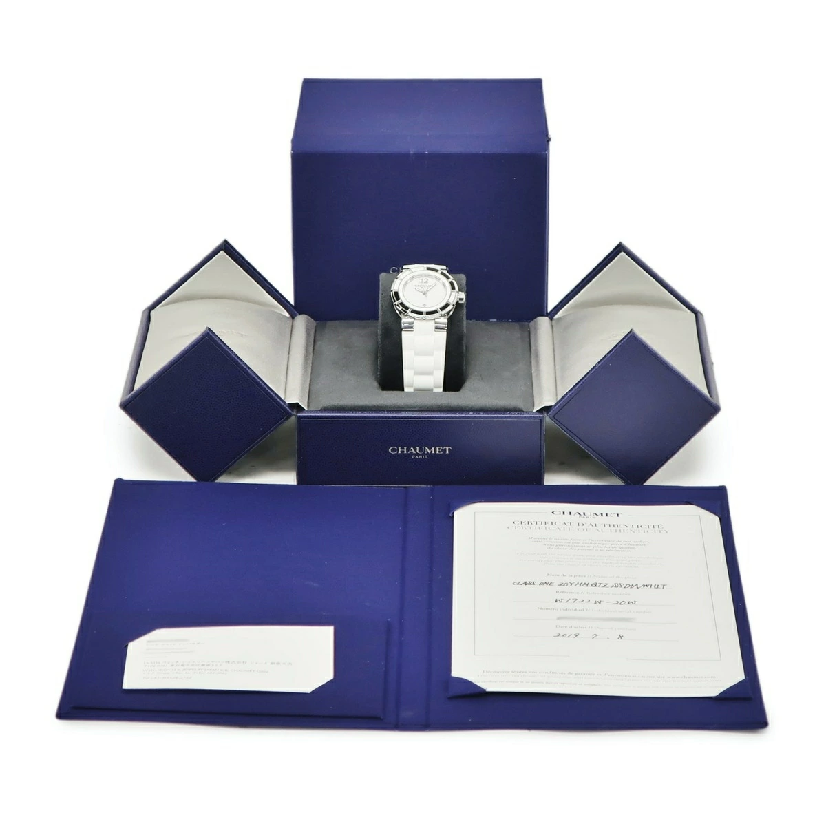 ショーメ CHAUMET クラスワン W1722W-20W 純正ダイヤ ホワイト クォーツ デイト 3針 20周年記念モデル レディース 腕時計クオーツ ホワイト 【中古】【店頭受取不可】