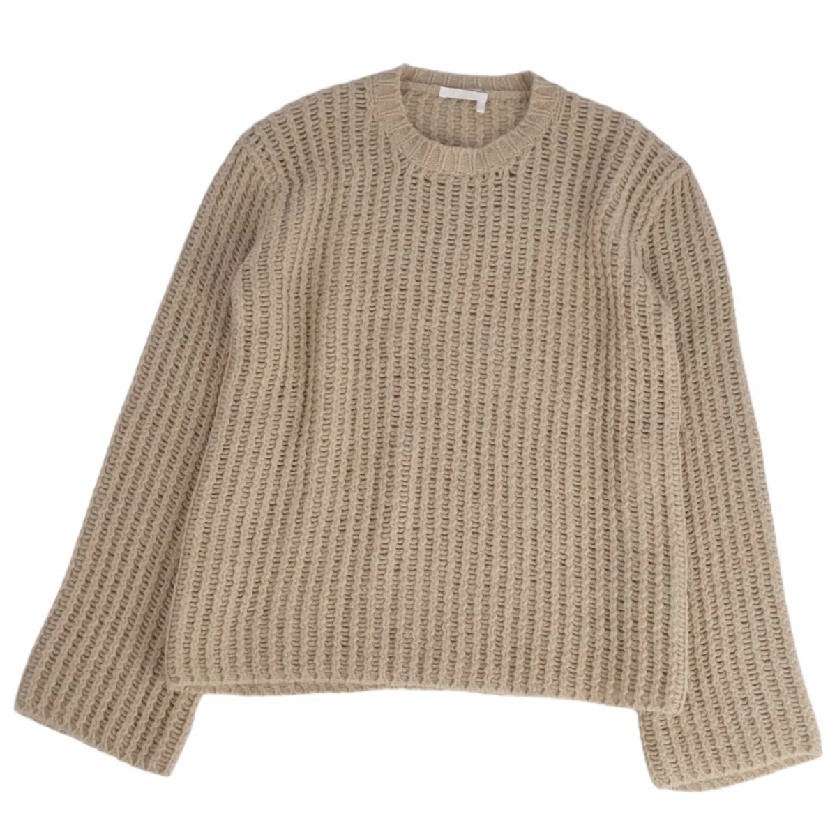 Pre-owned Chloe 2023 knit sweater, long sleeves, wool, silk, and cashmere, size S, beige. Excellent condition.