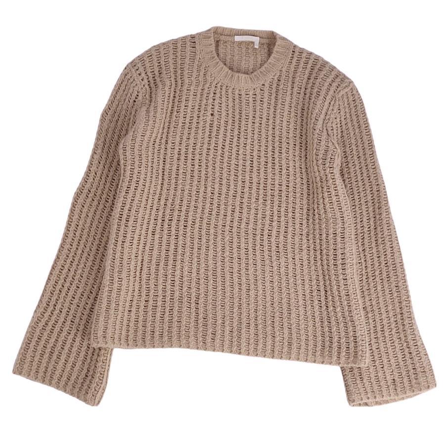 Pre-owned Chloe 2023 knit sweater, long sleeves, wool, silk, and cashmere, size S, beige. Excellent condition.