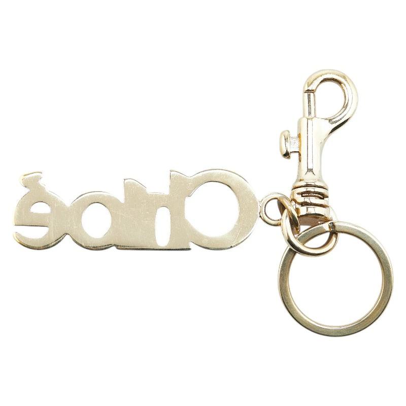 Pre-owned Chloe logo bag charm in gold and light blue plating.