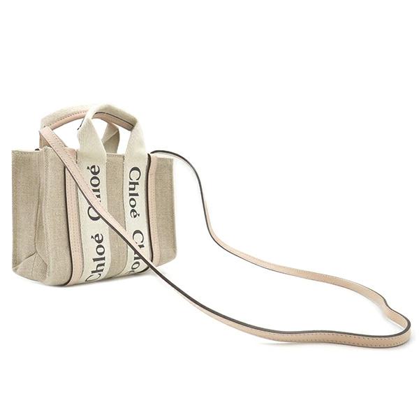 クロエ Chloe 2WAYバッグ リネン製 Woody ミニトートバッグ リネン リネンキャンバス シャイニーカーフスキン セメントピンク ハンドバッグ ショルダー CHC22AP237I266J5 レディース 【保存袋】定番 人気 美品 【中古】