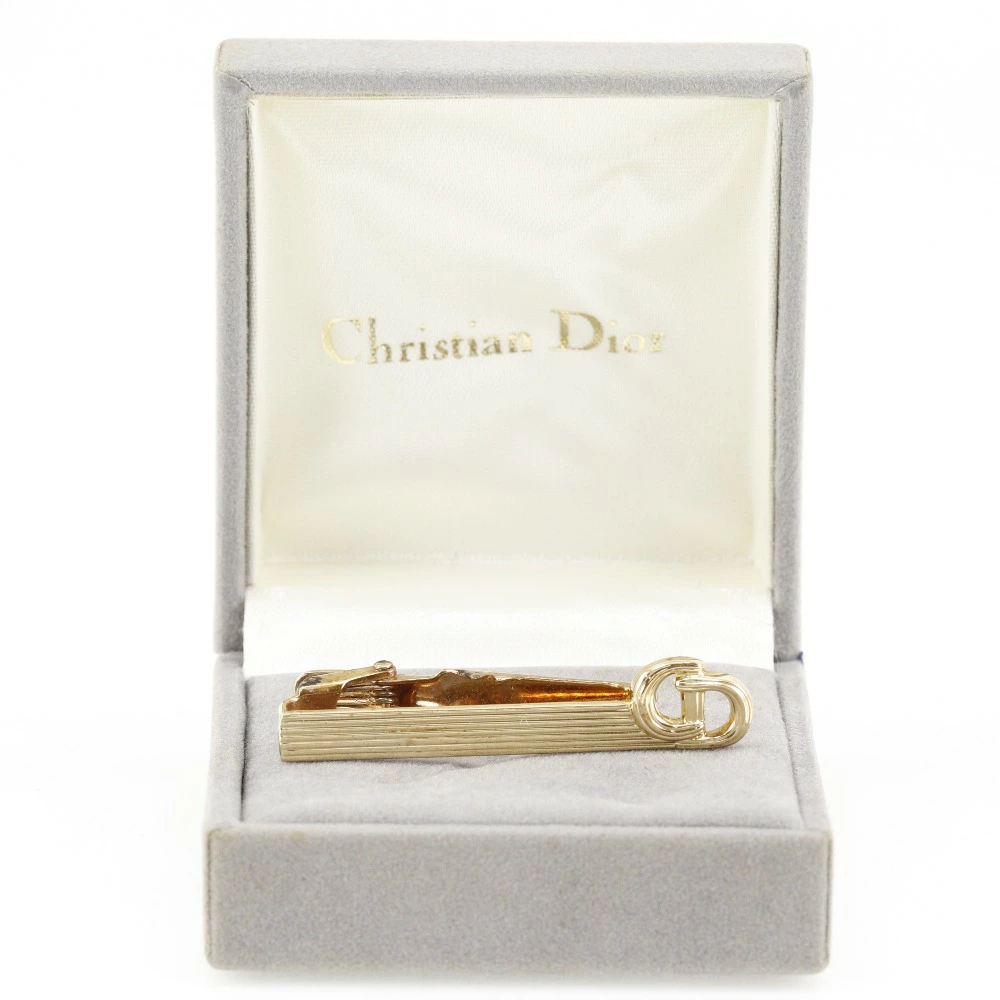 Pre-owned Christian Dior CD tie clip, vintage gold-plated, made in Germany, for men.