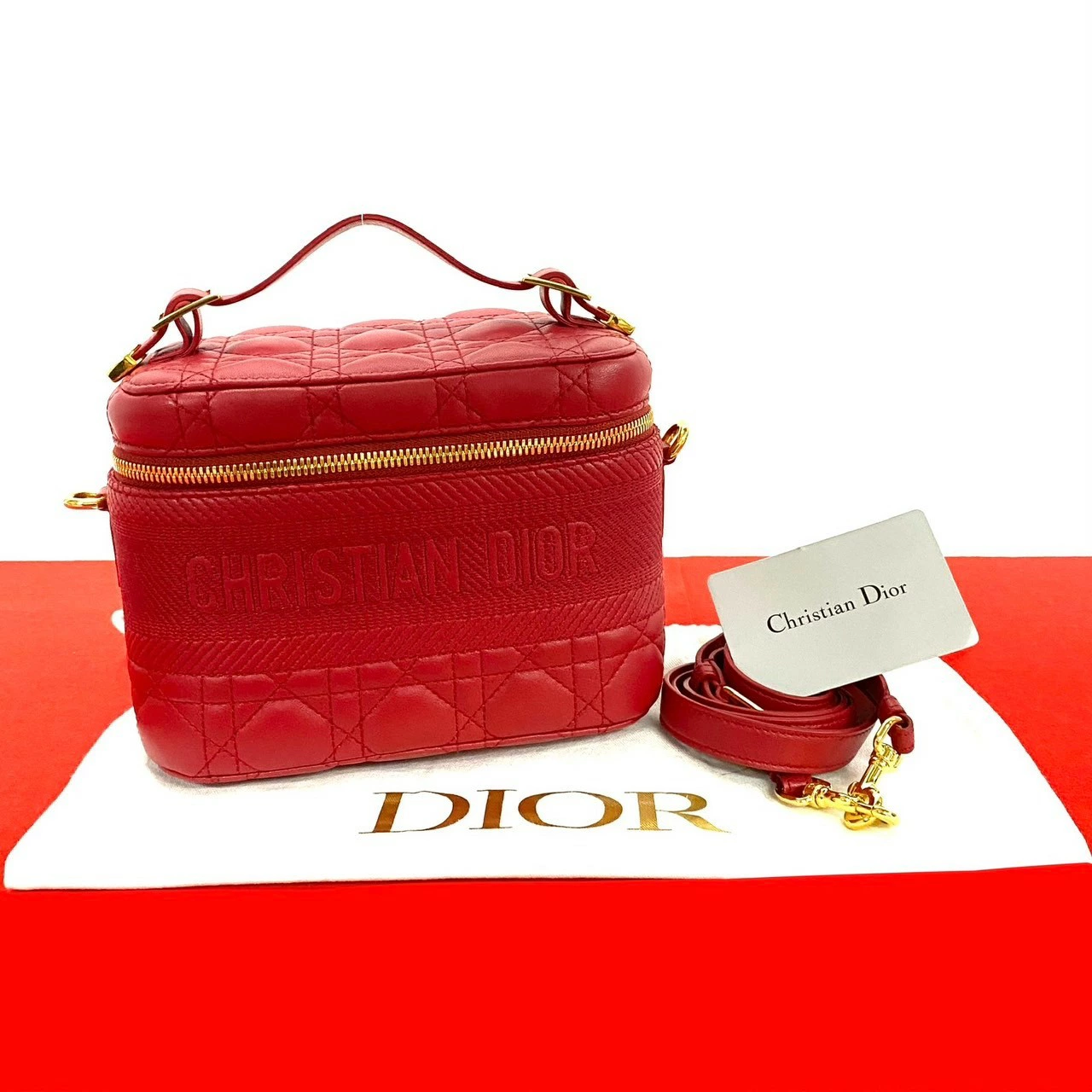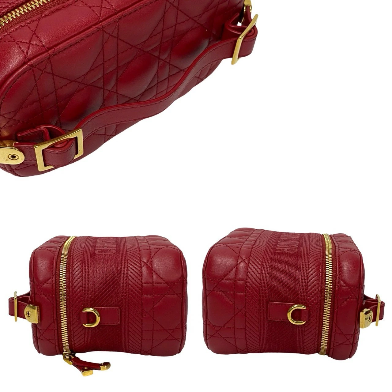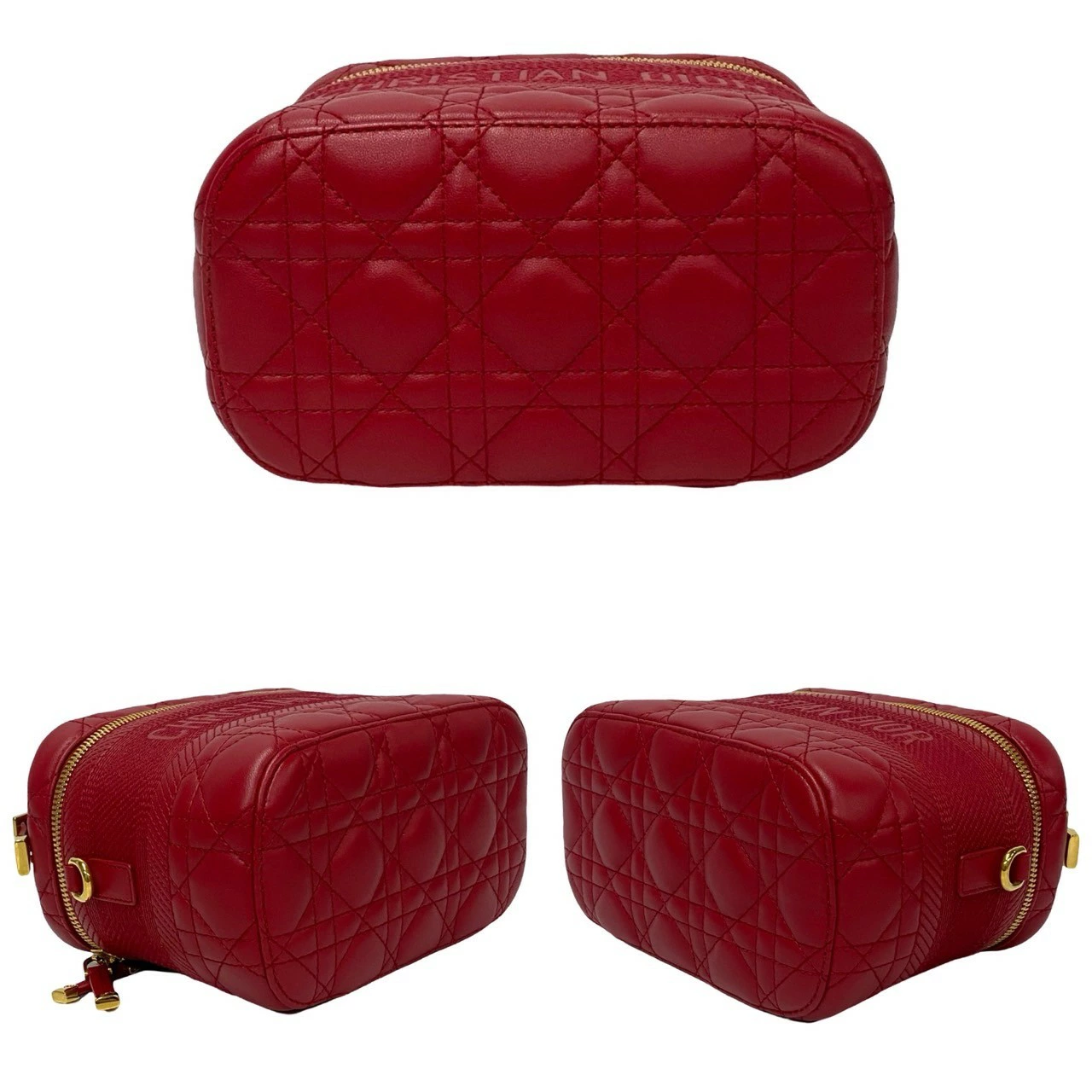 Pre-owned Christian Dior Dior Travel Small Leather Handbag/Vanity Bag/Shoulder Bag in Red (966-7) - Almost New