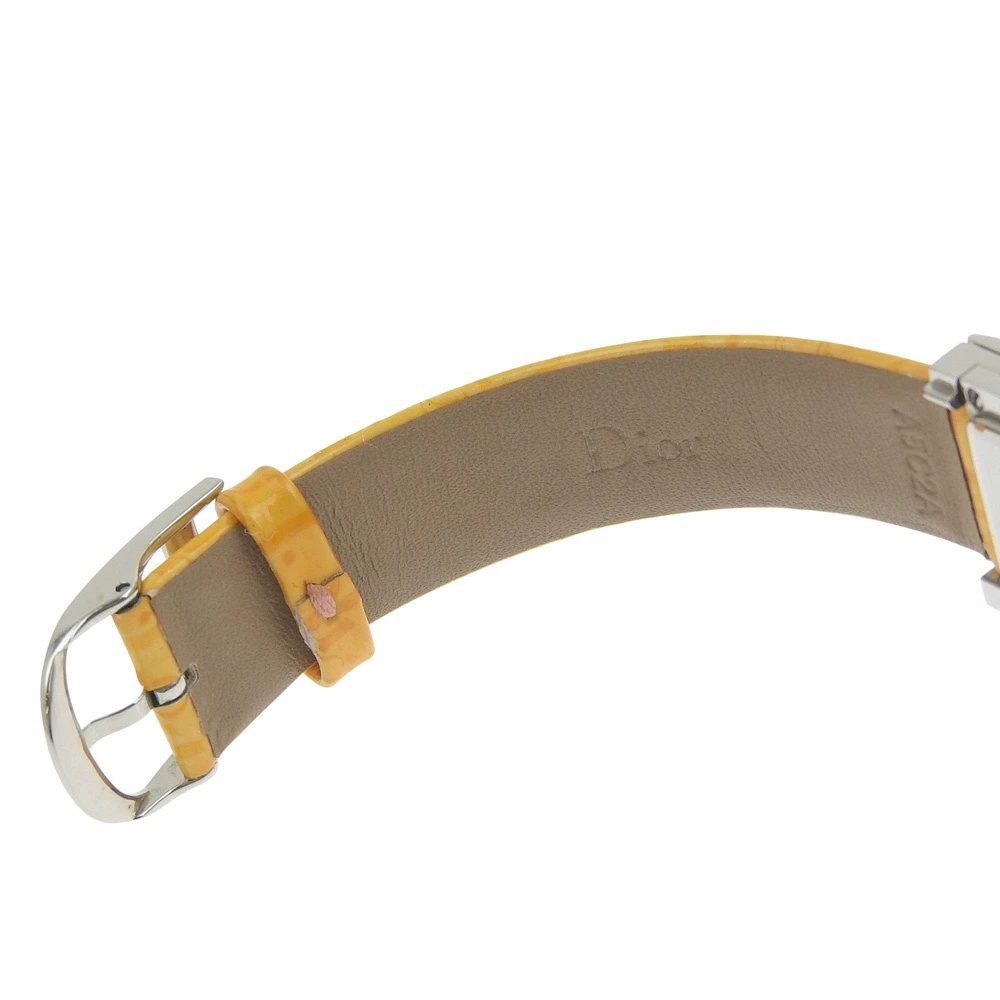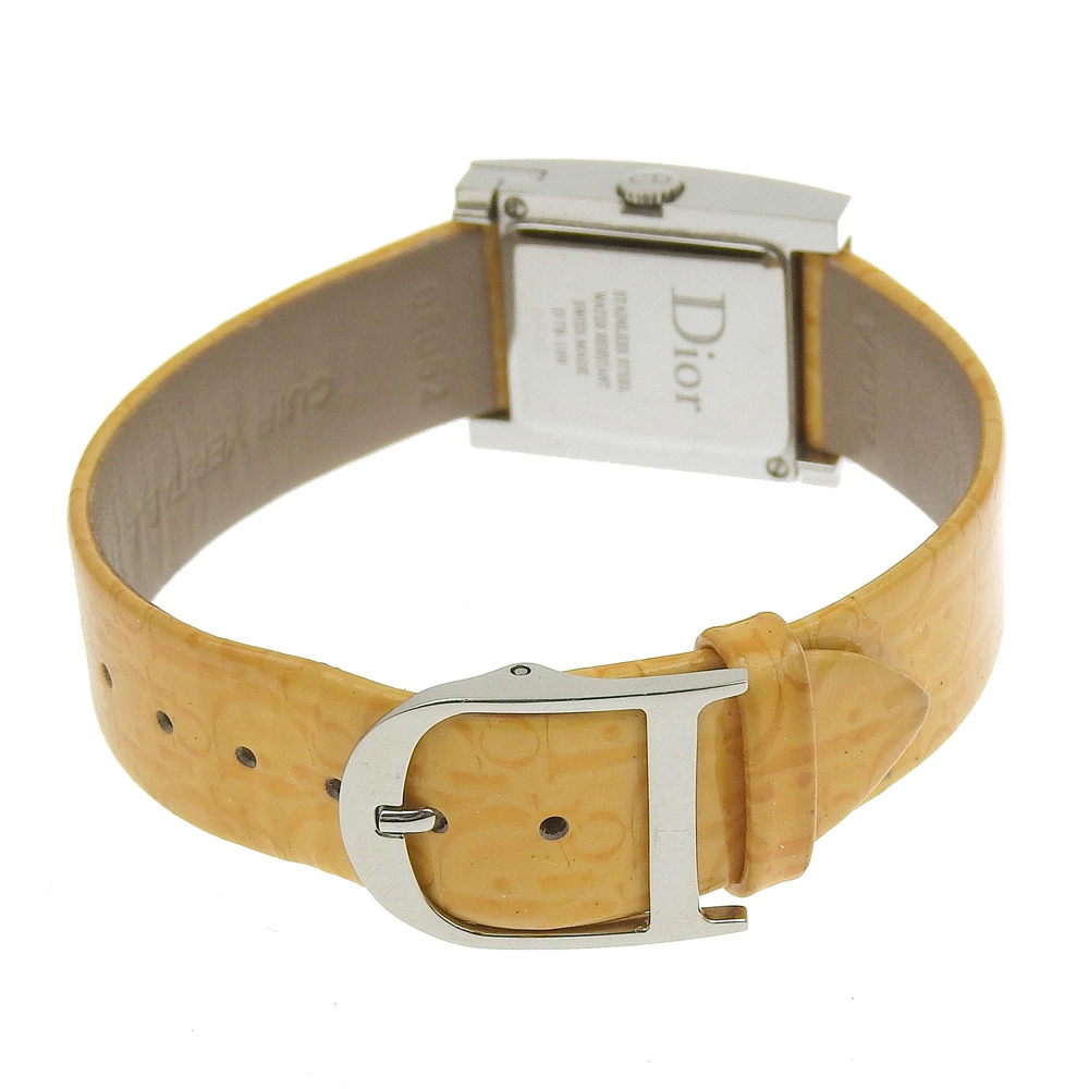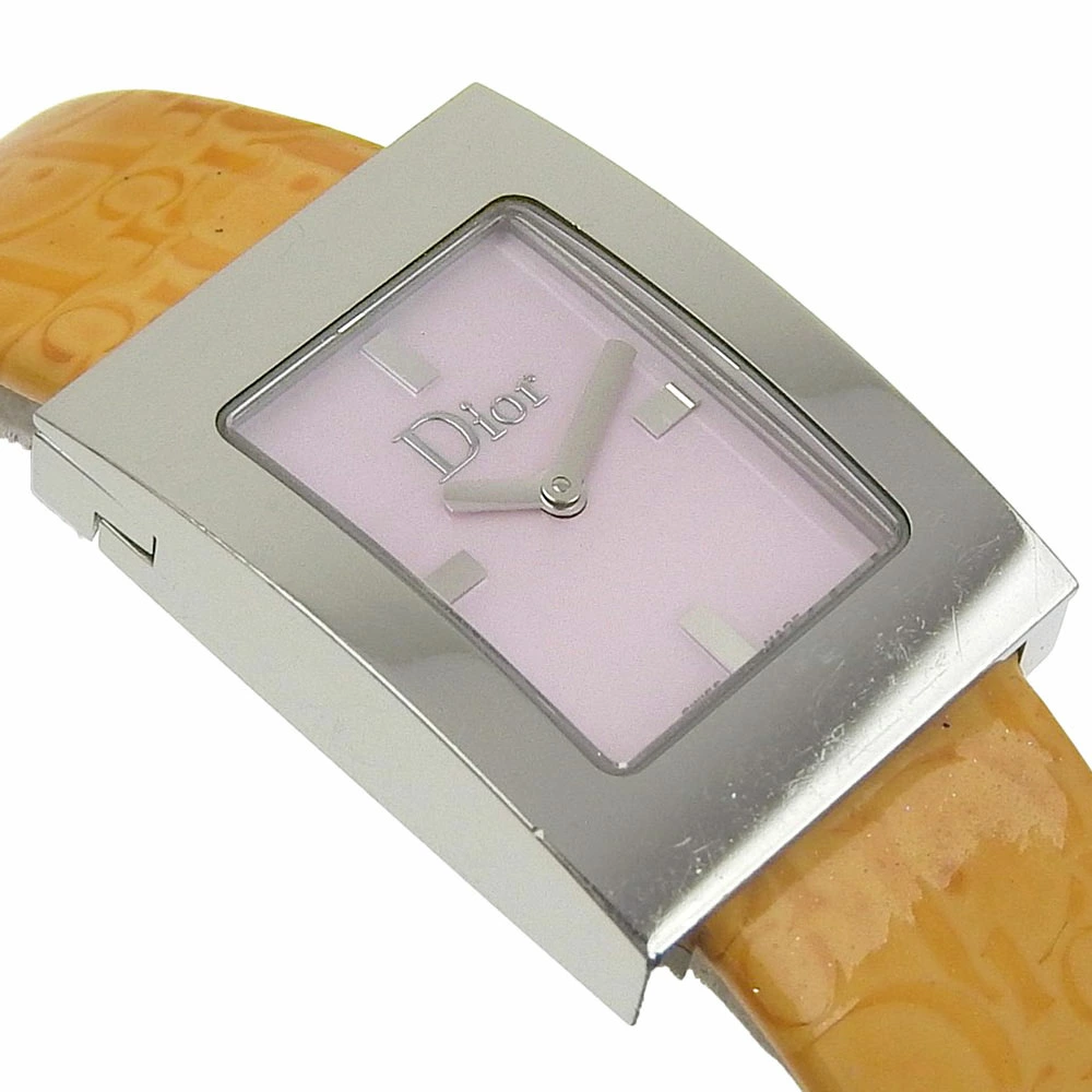 Pre-owned Christian Dior Maris watch D78.109, stainless steel and leather, quartz movement, analog display, pink shell dial, for women.