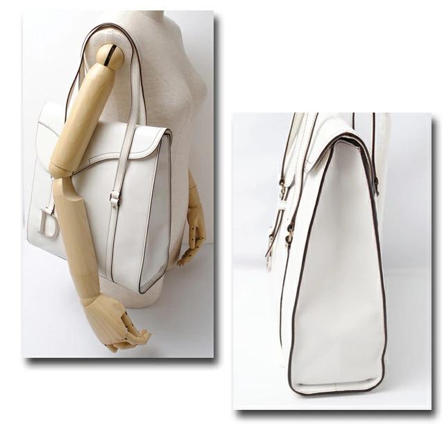 クリスチャンディオールより、ショルダーバッグ/サドルバッグです。ビジネスシーンにも合わせやすいA4サイズです。。清楚で、かっちりとしたフォルムが印象的。シルバーのDのロゴプレートがアクセントに!