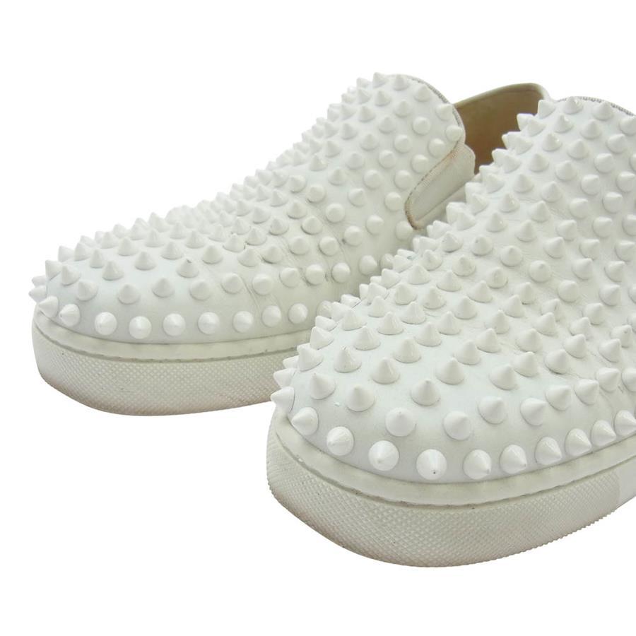 Pre-owned Christian Louboutin studded slip-on loafers in white, size 39.5.