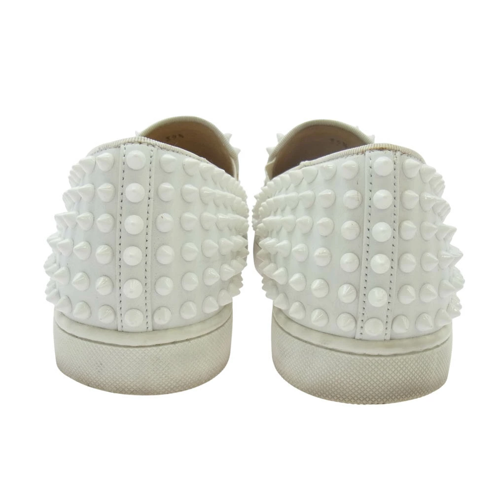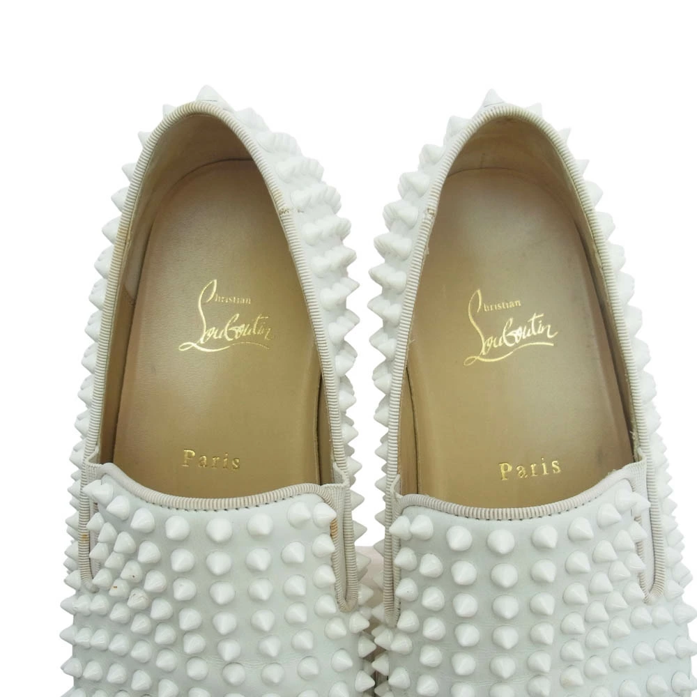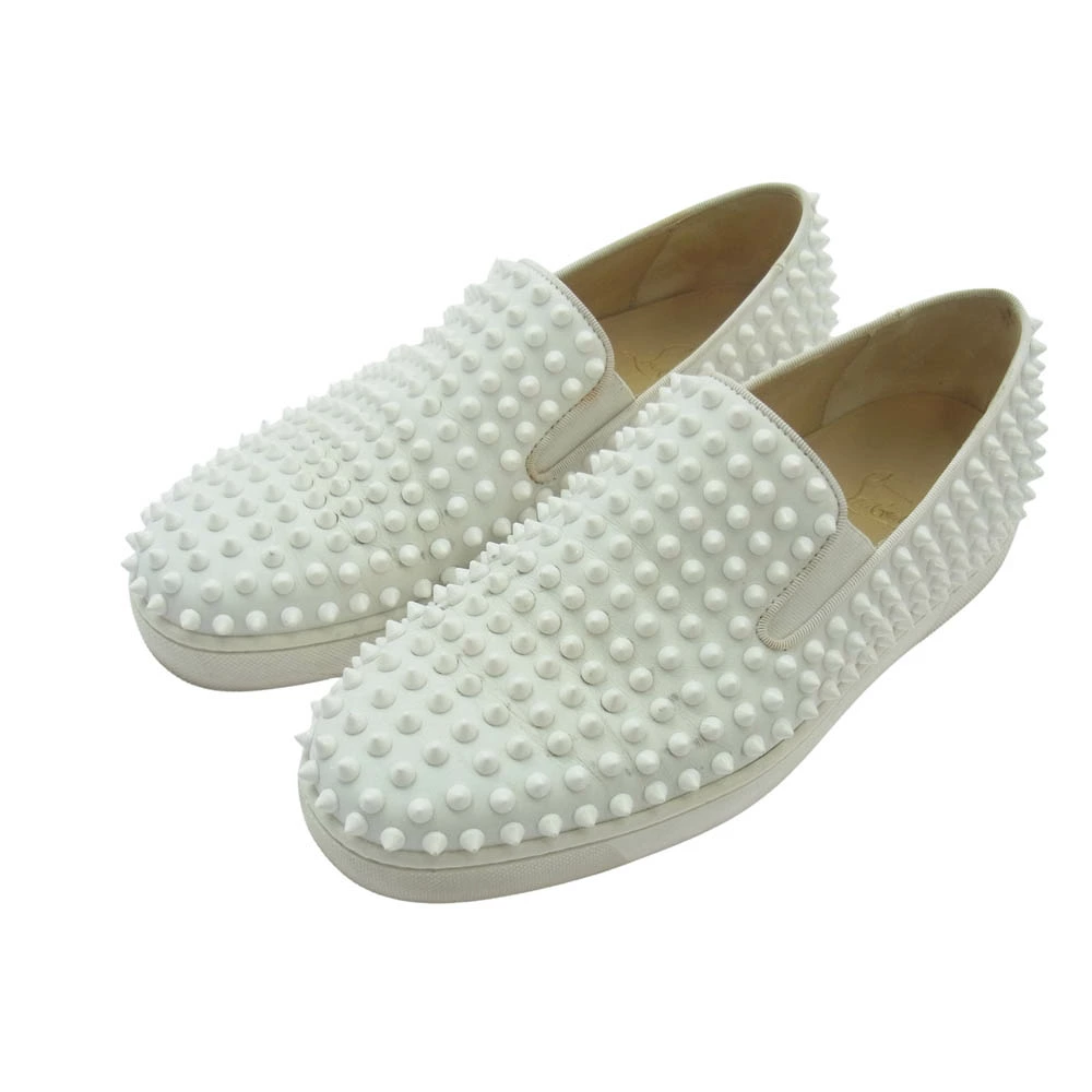Pre-owned Christian Louboutin studded slip-on loafers, white, size 39.5, men's.