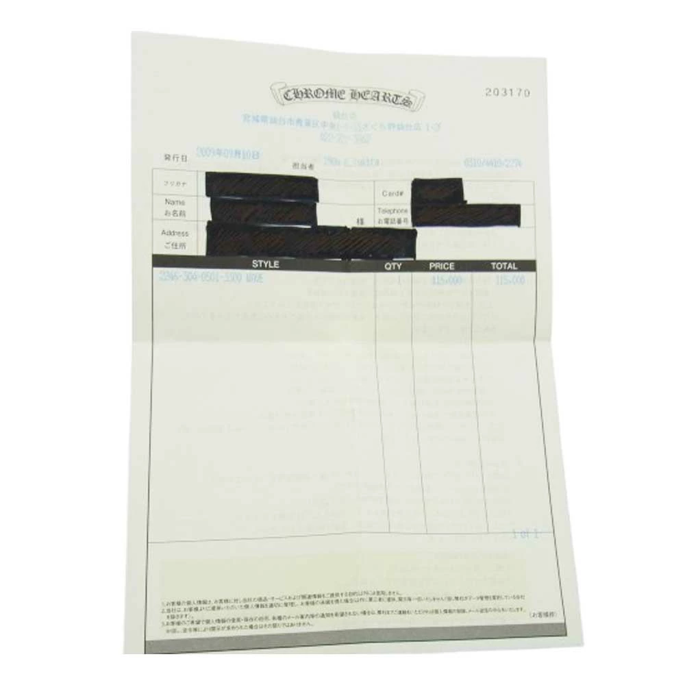 | 特記事項 | ※全体的に汚れがございます。※商品の特性上返品交換の出来ないお品となっておりますのでご了承の上でご検討下さい。 ※インボイスの個人情報、CARDナンバーの表示されている箇所につきましては個人情報保護の観点から黒塗りで削除させて頂いております。予めご理解の上でご購入下さい。 ※シルバー製品特有の使用感、傷、スレ、くすみ、燻などはございます。中古商材にご不安な方、完璧な商品状態をお求めの方はお控え下さい。 |